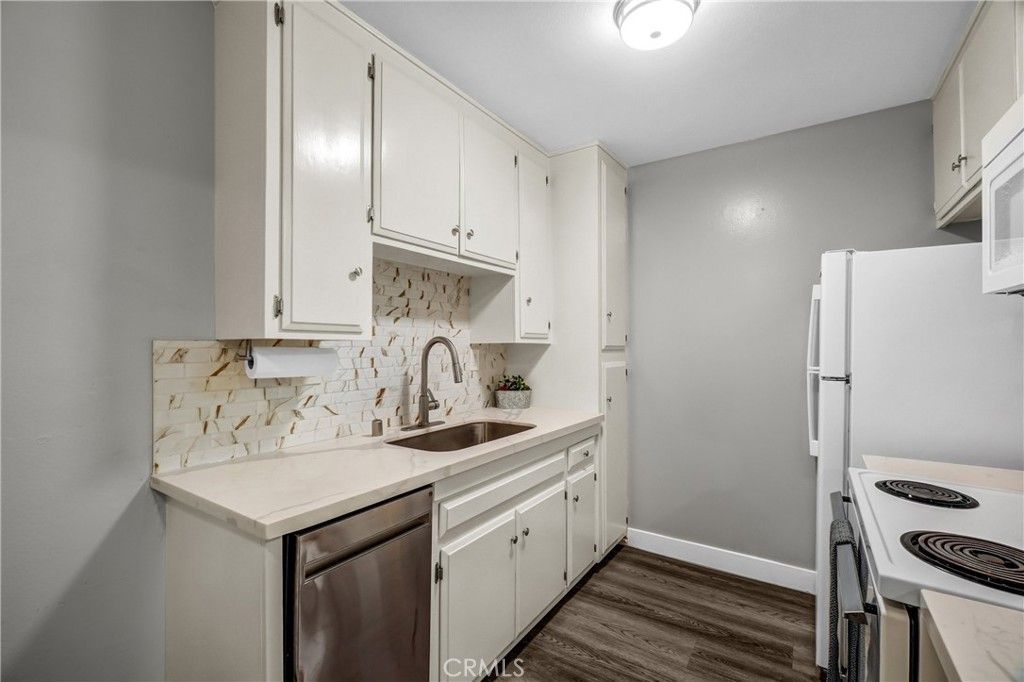A RARE lower corner-unit condo in MacArthur Village featuring one of the communitys largest yard-style patios. Unlike the typical all-concrete spaces, this outdoor area offers a covered patio plus a true garden setting, exclusive for this unit?ideal for pets, gardening, and entertaining. Filled with natural light and offering garden views, the oversized living room provides flexible space for a dining area or home office. The living room flows seamlessly into the light and bright eat-in kitchen, perfect for everyday dining or working from home. The generously sized bedroom is a peaceful retreat, also offering garden views, easily accommodates a king-sized bed, and features a spacious walk-in closet with shelving. The full bathroom offers granite countertops and generous storage, complemented by additional floor-to-ceiling storage in the adjacent hallway. Upgrades include a new electrical panel, smooth ceilings, recessed lighting, newer windows, and durable vinyl plank flooring throughout. The unit is all-electric with no individual water heater to maintain. MacArthur Village is a 24-hour guard-gated community with resort-style amenities including three pools, five spas, lighted tennis courts, pickle ball, basketball, volleyball, a fitness center, and lush grounds with meandering paths and BBQ areas. A laundry facility and pool are conveniently located just steps away. HOA dues cover water, trash, and sewer. Additional conveniences include an assigned carport parking space with storage plus a second permit for an unassigned uncovered space. Ideally situated in the highly desirable South Coast Metro area of Orange County, close to premier shopping, dining and entertainment such as, South Coast Plaza, Metro Pointe, Segerstrom Center for the Arts, and South Coast Repertory, with easy access to the 405, 55, 73, and 5 freeways. This move-in ready condo offers a rare blend of indoor-outdoor living and is a standout opportunity in the community.