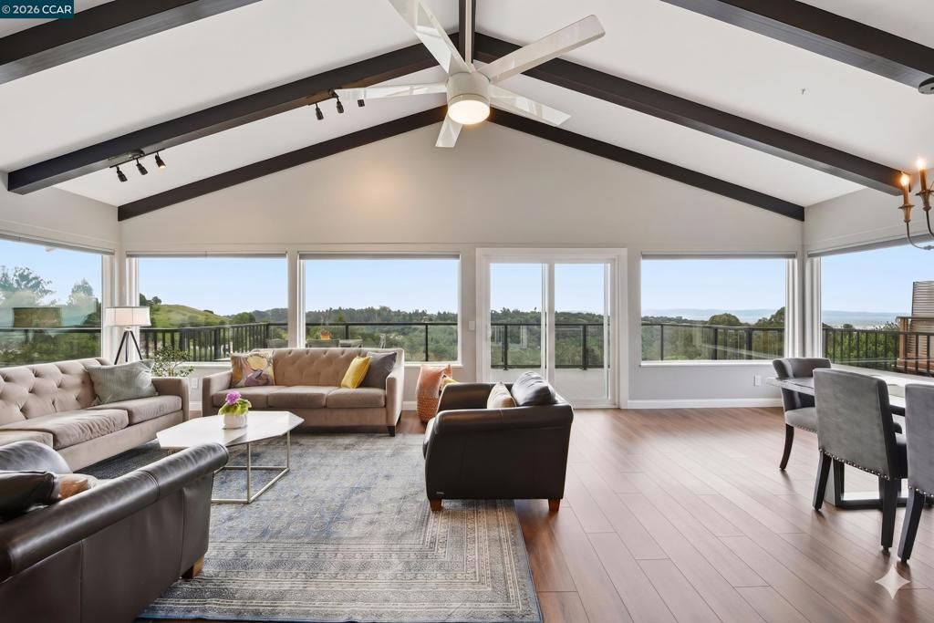 Expansive views take center stage in this beautifully updated single-level 4-bedroom home, tucked away on a quiet court. Designed for indoor-outdoor living, the property features a private enclosed courtyard and two rear decks, ideal for gathering, dining, and taking in the surrounding landscape. From the moment you enter, the views draw you through the home. Vaulted ceilings, large picture windows, and sliding glass doors flood the space with natural light and create a seamless connection to the outdoors. The layout flows past the dining area into an open-concept kitchen with a large island, breakfast nook, and separate butlers pantry, all opening to an expansive great room. Step outside for al fresco dining on the deck, overlooking a lush backyard with fruit trees and seasonal blooms. The flexible floor plan includes a separate living room and a privately positioned owners suite with direct patio access. Three additional bedrooms and two remodeled bathrooms are located on the opposite wing. Owned solar, newer roof and windows, and a location offering access to nature, recreation, and commuter routes, all within the peaceful Sequoyah Heights setting. Close to Bishop O'Dowd high school, Hwy 580, Oakland Zoo, and Skyline trails. Come see this home today!