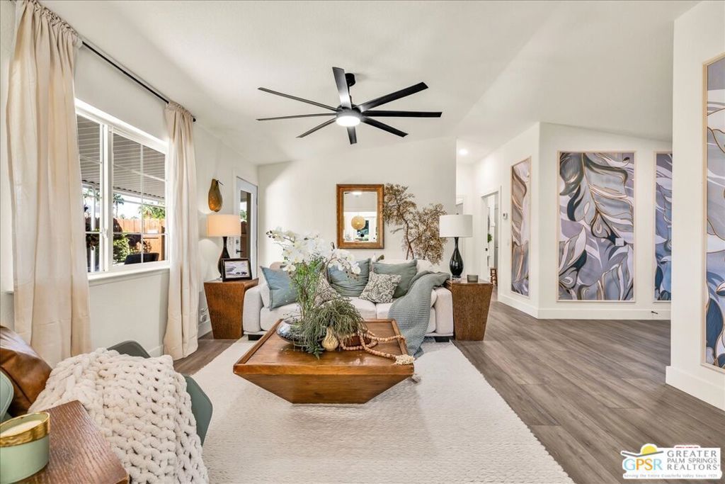 Introducing a rare income-producing opportunity in one of the Coachella Valley's premier 55+ active adult communities, Date Palm Country Club. This thoughtfully reimagined home has been transformed from a standard 2-bedroom, 2-bath double-wide into a versatile 3-bedroom, 3-bath residence with an attached private casita, perfect for guests, multigenerational living, or rental income.The self-contained casita features its own private entrance, kitchen, bathroom, laundry, and dedicated driveway offering true independence and exceptional rental potential. Whether you're looking to offset monthly space rent or create a comfortable in-law suite, this flexible layout delivers both privacy and practicality. The main residence showcases a beautifully upgraded kitchen with high-end appliances, a walk-in pantry, and seamless flow into a formal dining area and inviting living room. A grand entry highlights soaring vaulted ceilings, creating an open and airy ambiance. Two fully renovated bathrooms, along with a conveniently located indoor laundry room, complete the interior. Step outside to enjoy two private covered patios with breathtaking golf course and mountain views, ideal for relaxing or entertaining. The outdoor space also features a charming koi pond, utility shed, and a dedicated golf cart garage. The extended covered carport accommodates two or more vehicles and even includes a fun shuffleboard layout. Residents of Date Palm Country Club enjoy resort-style amenities including an 18-hole executive golf course, on-site dining at Nick's Bistro, tennis and pickle ball courts, multiple pools and spas, a vibrant clubhouse with year-round social activities, RV parking, and even a dedicated dog park. This is more than a home. It's a lifestyle investment in a sought-after community. A must-see property with unmatched versatility and income potential.