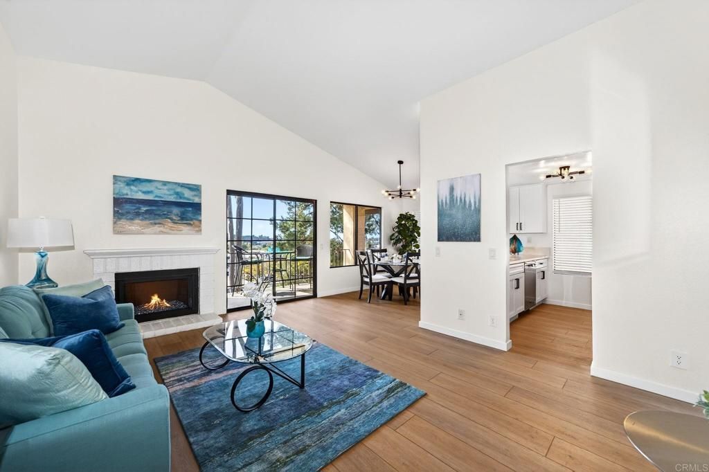 The one youve been waiting for! Welcome to this beautifully remodeled 2-bedroom, 2-bath condo in the desirable Avocado Gardens community of San Marcos ? where modern design meets comfort, privacy, and mountain views. Step inside and immediately notice the soaring vaulted ceilings in the living and dining areas, creating an open, airy feel rarely found in condos at this price point. Natural light fills the space, drawing you toward the modernized fireplace featuring contemporary Fire & Ice crushed glass ? a stunning focal point that adds both warmth and style. The fully remodeled kitchen is thoughtfully designed with quartz countertops, white shaker cabinetry with soft-close doors and drawers, and stainless-steel appliances. From the kitchen, dining area, and private balcony, enjoy peaceful mountain views and the added benefit of no rear neighbors. Luxury vinyl plank flooring runs throughout the main living areas, complemented by designer three-tone paint and matte black ceiling fans that carry a timeless black-and-white aesthetic from room to room. The spacious primary suite offers dual closets and a dual-vanity ensuite bathroom, providing both functionality and comfort. The secondary bedroom and bath are equally well-appointed, ideal for guests, a home office, or roommates. Even the attached garage has been upgraded ? freshly painted with a sleek epoxy-coated floor for a clean, finished look. The building itself is gated for added privacy, and residents enjoy access to Avocado Gardens amenities including a pool, spa, and playground. Located just minutes from California State University San Marcos, with convenient access to I-15 and Highway 78, this home offers both style and everyday practicality. Turnkey. Elevated. Ready for its next owner.