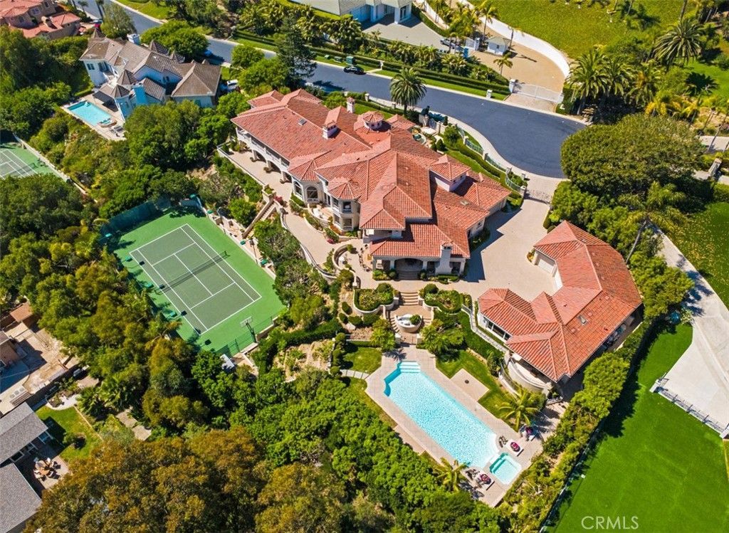 Located within the prestigious guard gated enclave of Bear Brand Ranch, 12 Morning Dove is a magnificent ocean view estate that epitomizes Southern California coastal, luxury living. Set on approximately 1.41 acres, this extraordinary custom residence offers over 13,500 square feet of refined living space with 10 bedrooms and 11.5 bathrooms, designed to provide both grand-scale entertaining and ultimate privacy. A dramatic entry welcomes guests into a soaring foyer highlighted by exquisite custom woodwork and architectural detailing throughout. Expansive living spaces are filled with natural light and flow effortlessly from formal living and dining areas to relaxed family gathering spaces anchored by elegant fireplaces. The newly remodeled chefs kitchen is thoughtfully designed with premium appliances (Gaggenau range) and custom cabinetry, and an oversized island, creating a perfect setting for both intimate meals and large-scale entertaining. Nearby formal and informal dining spaces provide seamless functionality for hosting. A custom built formal dining table seats up to 20 for the ultimate family dinners. The primary suite serves as a large expansive private sanctuary, featuring a luxurious spa-inspired marble bathroom with large walk in closet, one of two in the suite. Also a second office and a private balcony overlooking the estates beautifully landscaped grounds and ocean view. Many unique features within this elegant home include 2 large ensuite bedrooms that sit off a large study area complete with three built in desks and a large custom square conference table. Downstairs is the grand game room complete with a 9 seat movie theater and an authentic Japanese Tea room with custom tatami floors and Shoji sliding doors. Designed for resort-style living, the grounds feature: A private regulation tennis court/Pickle ball court, lit for evening play and newly resurfaced. Resort-style pool and spa. Multiple outdoor entertaining areas. One bedroom/One bath casita ideal for guests. Additional amenities include 2 garages including a 4 car garage for the car enthusiast, 290 bottle wine cellar, home gym/mirrored dance studio with full bath & ladies nail bar. Extensive patios overlooking the tennis court/grounds include a large outdoor barbecue area with outdoor fireplace. Located just minutes from famous resorts and beaches, as well as premier dining and shopping, elevate the estate to a truly world class residence.
