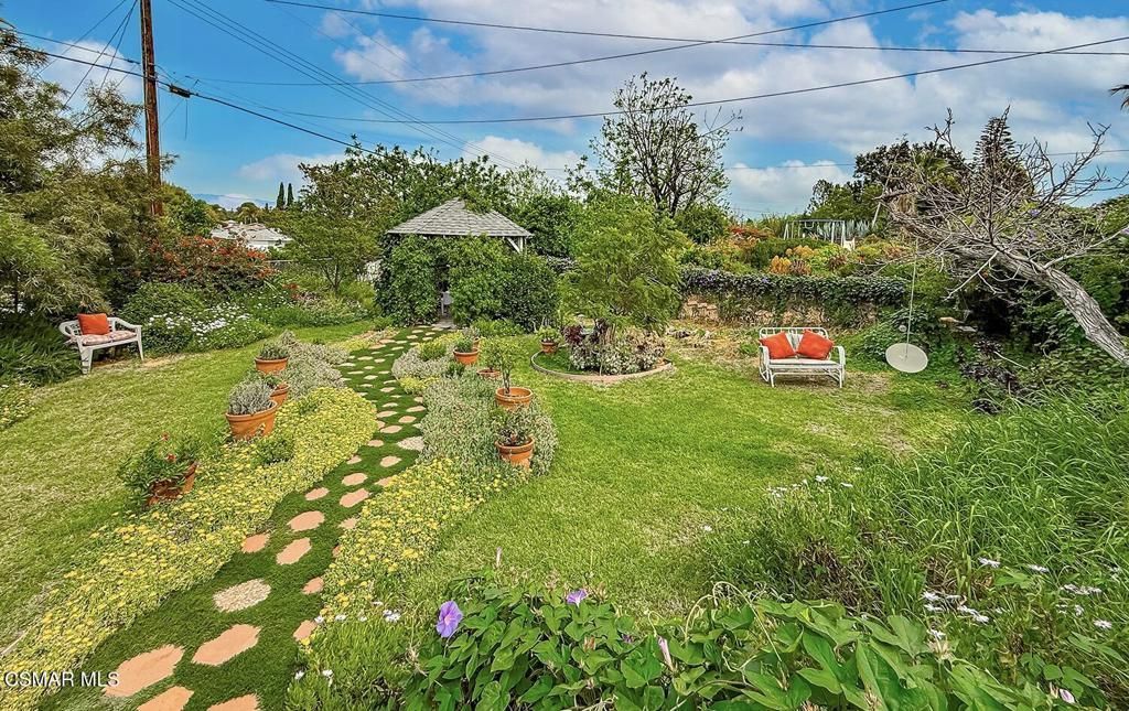This 4-bedroom, 2-bathroom single-story home in West Simi Valley offers 1,302 square feet on a 10,454 square foot cul-de-sac lot, built in 1960. The property includes a detached structure separate from the main residence, providing flexible use for work, guest room or art studio. The lot size and configuration may support additional improvements or an ADU (accessory dwelling unit), subject to buyer verification and local regulations.The layout connects the kitchen, dining, and living areas for functional daily use. The kitchen includes a breakfast bar, breakfast nook with a garden window, stainless steel gas range, black dishwasher and oven. Slate tile flooring is installed in the entry and kitchen, with a mix of tile and carpet throughout the rest of the home. The living room features a brick fireplace and direct access to the outdoor patio.The primary suite includes French sliding door access to the backyard. Central heating and air conditioning provide climate control, and dual-pane windows are installed. Laundry is located in the attached 2-car garage and includes a utility sink.The outdoor space includes landscaped garden areas, pathways, and open space for recreation or future customization. The backyard includes citrus trees, walnut tree and the front yard features an apple tree. Peek-a-boo mountain views are visible from portions of the property, and the lot provides flexibility for a range of uses.Located near Rancho Simi Community Park, Mount McCoy hiking trail, shopping, restaurants, and Costco. Nearby schools include Madera Elementary, Sinaloa Middle School, and Royal High School.