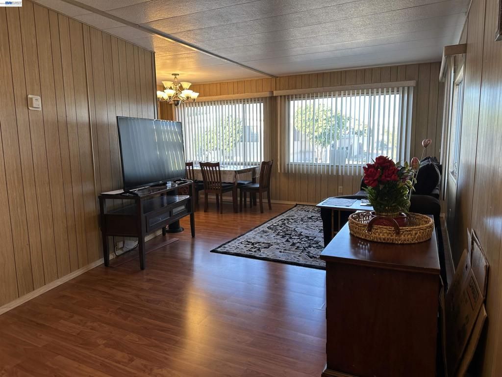 Great opportunity!! Clean, Cozy and ready for your ideas and upgrades! 2 bed/2 bath mobile home in the Eden Gardens Estates Mobile Home Park, a Senior Community. It's L-shaped living and dining rooms open to the galley kitchen. Dining room has a built in china hutch. Kitchen has a gas cooktop and the Refrigerator stays. Interior laundry with Washer & Dryer. 2 Storage Sheds, covered parking for 2 cars and plenty of space for that back yard dream garden :) Easy access to the Interstate 880, San Mateo Bridge, and various shops. One buyer must be 55 years or older, all others, no. younger than 18. Space rent is $880.00 per month Fireplaces: NO