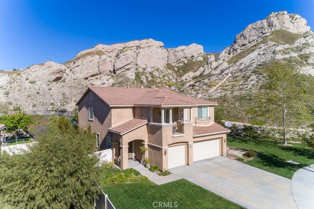 Probate sale subject to court approval. Beautifully situated at the end of a cul-de-sac in Stetson Ranch, beneath dramatic hills and rock formations, 15503 Megan Drive offers a rare combination of scenic setting, privacy, and generous living space in Canyon Country. Built in 2010, this well-maintained 3,619 sq. ft. home features 5 bedrooms and 4 full bathrooms, including a desirable ground-level bedroom and full bath, along with a 3-car garage. The entry opens to a great room design with the formal living room flowing into the formal dining area at the rear of the home. Also at the rear, the inviting family room features luxury plank vinyl flooring, a traditional fireplace, and opens to the kitchen with a large granite island, built-in oven and microwave, abundant cabinetry, pantry, and sunny breakfast nook. Upstairs, an airy loft adds flexible living space and opens to a front balcony that enhances the homes architectural appeal and hillside setting. The spacious primary suite offers two large walk-in closets, dual vanities, a garden tub, separate shower, and its own fireplace. Two secondary bedrooms share a Jack and Jill bath, while a junior suite with private bath is set apart at the opposite end of the upper level. The upstairs laundry room includes space for a washer and gas dryer, along with a counter and additional cabinetry for convenience and storage. With its attractive curb appeal, functional floor plan, and memorable natural backdrop, this is a rare opportunity to purchase a beautiful home in a distinctive Stetson Ranch setting.