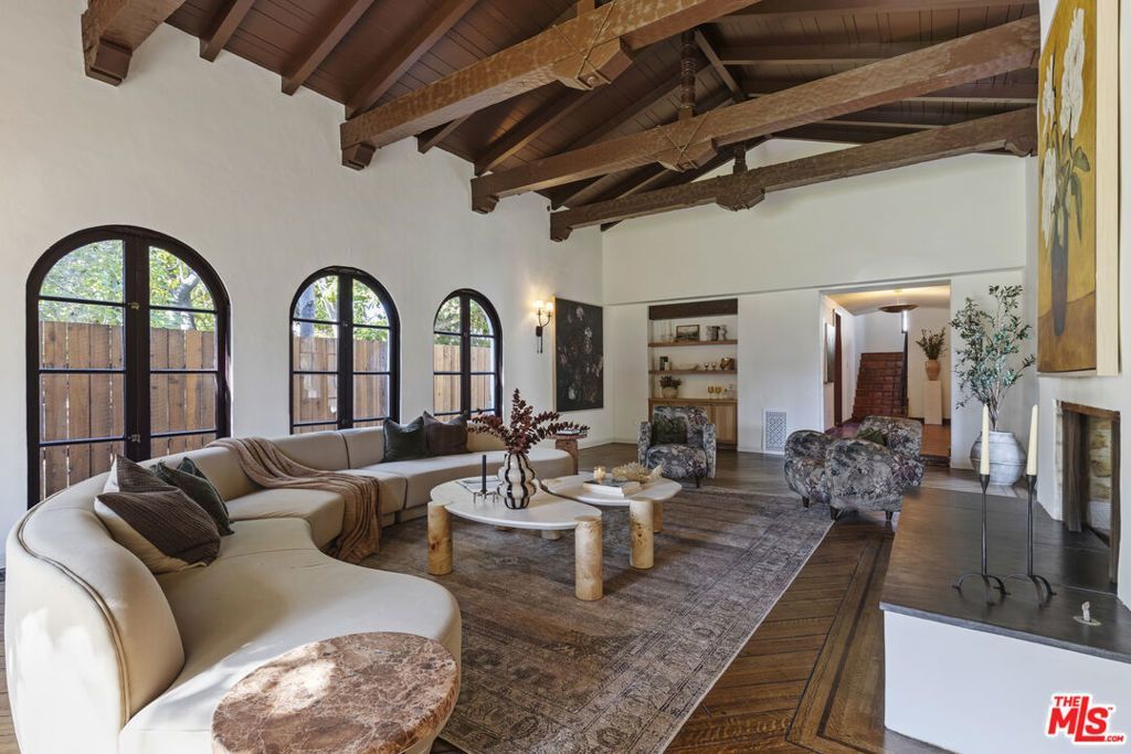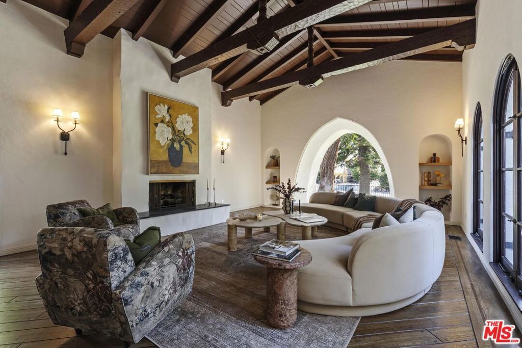 Timeless Spanish Revival architecture meets modern luxury in this beautifully restored Sunset Square residence. Set within one of Los Angeles' most coveted historic enclaves, 1641 N Ogden showcases authentic craftsmanship paired with refined, contemporary updates throughout. Signature details including Saltillo tile, arched doorways, decorative ironwork, and a classic clay tile roof honor the home's 1920s heritage, while a thoughtful restoration introduces elevated comfort and style. The residence offers five bedrooms and four-and-a-half baths, including a first-floor nanny suite ideal for guests or multi-generational living. Sun-filled interiors are defined by original hardwood floors and bespoke millwork, anchored by a chef's kitchen designed for both sophisticated entertaining and everyday living. French doors open to a thoughtfully designed outdoor entertaining and dining space, and sparkling pool framed by lush landscaping, now enhanced with newly installed privacy hedges that create a more secluded, tranquil outdoor setting.