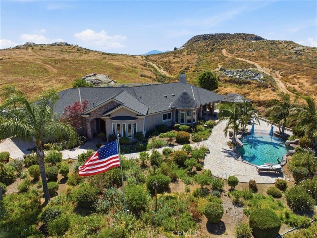 Discover a rare opportunity to own a private estate on over 2.03 acres in the hills of Riverside! This spacious 5-bedroom, 3-bath home offers the perfect blend of comfort, functionality, and breathtaking surroundings. Perched to capture panoramic mountain views and sparkling city lights, this property delivers a true retreat-style living experience. The main residence features generous living spaces, newer appliances, and thoughtful upgrades throughout, including a radiant barrier and full insulation for enhanced energy efficiency. A 3-car attached garage and RV parking with hookups provide added convenience and flexibility. Step outside to your own backyard oasis, complete with a saltwater pool featuring rock accents and a cascading waterfall...perfect for relaxing or entertaining. Equestrian enthusiasts will appreciate the well-appointed horse facilities, including two 12x12 box stalls, a mare barn, tack room, and ample turnout area. With over two acres of usable land, there is plenty of room for riding, expansion, or additional improvements. Additional features include a solar lease to help offset energy costs. This unique property offers privacy, scenic beauty, and versatility...ideal for those seeking space, views, and a lifestyle thats hard to find. Dont miss this exceptional Riverside opportunity!