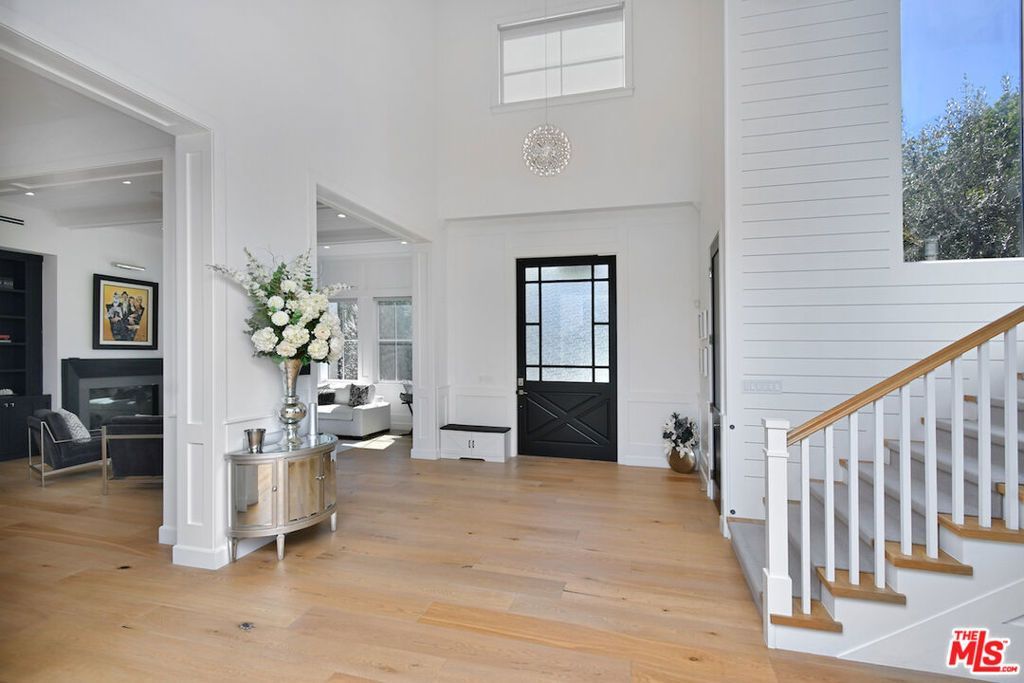 Experience refined modern farmhouse living in the highly coveted Amestoy Estates. Situated on an expansive 18,000+ sq ft corner lot at the end of a prime cul-de-sac, this gated estate showcases exceptional curb appeal and thoughtful design throughout.A bright, open-concept floor plan is enhanced by oversized windows that flood the home with natural light, while custom built-ins add sophistication to the formal living and dining spaces. A striking wine room is perfectly positioned for both function and display.The gourmet kitchen is designed for both everyday living and entertaining, featuring top-of-the-line Wolf appliances, dual oversized quartz islands, a butler's pantry, and abundant storage.Seamless indoor-outdoor flow is achieved through floor-to-ceiling pocket sliding doors, opening to a true entertainer's backyard complete with a Pennsylvania bluestone patio, resort-style pool, zero-edge spa, outdoor living room with a double-sided fireplace, pavilion, sports court, BBQ area, fire pit, and a generous grassy lawn. The luxurious primary suite offers vaulted beamed ceilings, a fireplace, and a wraparound balcony with tranquil treetop views. Upstairs includes three additional spacious bedrooms, a built-in workstation, and a dedicated laundry room. Downstairs features a guest bedroom, private office, and a plush home theater with a state-of-the-art sound system. Additional highlights include a Control4 smart home system and a gated motor court with ample parking. Ideally located near Encino's premier shopping, dining, and lifestyle amenities, this home offers the perfect blend of luxury and convenience.