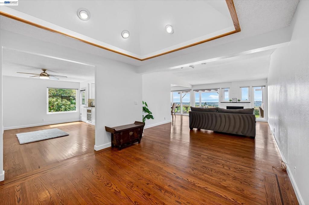 Beautiful single story 4BD/2BA home with stunning bay views and an ideal floor plan. Light-filled throughout, the home features expansive windows, a skylit entry, and seamless flow between the living, dining, and family rooms. The kitchen offers upgraded cabinetry, and a garden window overlooking the side yard. The family room includes a fireplace and sliding door access to the backyard, perfect for indoor-outdoor living. Three sliding doors open to the backyard and spacious side yard from the family room, primary suite, and secondary bedroom/office ideal for a garden, play area, or private patio retreat. The hall bathroom is updated with a tub/shower combo. The primary suite features a large walk-in closet, updated vanity & bathroom with shower. Additional highlights include hardwood flooring in main living areas, carpeted bedrooms, owned solar, alarm system, dual-pane windows, and laundry room. Enjoy breathtaking views from the backyard perfect for relaxing or entertaining. Backyard and driveway have stamped like concrete, spacious side yard, and views so stunning you won't want to leave. Close to Freeway, Cull Canyon Regional Park, Bay Trees Park, Lake Chabot, Anthony Chabot Regional Park, and Golf Courses. Open Sat and Sun 1-4pm.