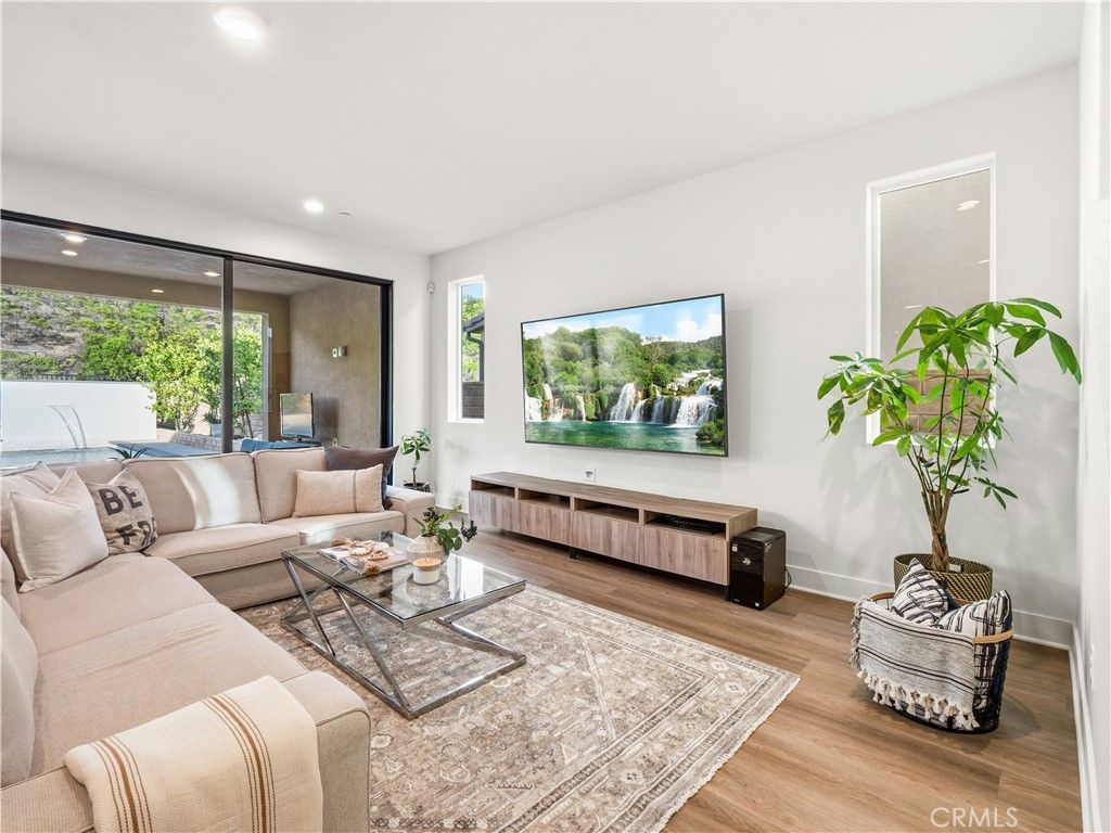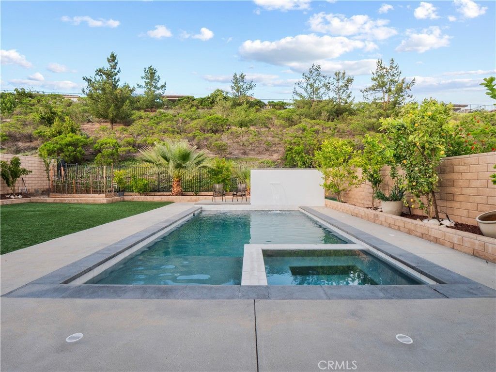Located in Santa Claritas highly sought-after Plum Canyon community, this beautifully upgraded 5-bedroom + loft, 3-bathroom home offers the perfect blend of comfort, functionality, and luxury living. Step inside to a bright and open floorplan where the living room, dining area, and kitchen seamlessly flow together, enhanced by recessed lighting and an expansive sliding glass door that fills the space with natural light and creates effortless indoor-outdoor living. The kitchen features a center island with barstool seating, granite countertops, a beautiful tile backsplash, and upgraded modern cabinet hardware?perfect for both everyday living and entertaining. A convenient downstairs bedroom and full bathroom add flexibility for guests, a home office, or multi-generational living. Upstairs, youll find 4 additional bedrooms, including a spacious primary ensuite, a versatile loft, and a dedicated laundry room with sink. The backyard is a true resort-style retreat and entertainers dream?complete with a sparkling pool and spa, water feature, covered patio, spacious turf area, and approximately 15 producing fruit trees offering year-round harvest and natural beauty. Mature greenery behind the yard fence provides exceptional privacy, creating a peaceful outdoor oasis. Additional highlights include luxury vinyl flooring throughout, owned solar, an attached 2-car garage, and included appliances such as the refrigerator, washer, and dryer. Enjoy close proximity to nearby trails and Plum Canyon Park, featuring a playground, baseball and basketball courts, exercise equipment, and annual community events. Residents also have access to community amenities including a pool, spa, kiddie pool, and BBQ areas. With no Mello-Roos and a prime location near top-rated schools and Skyline Ranch Plaza?home to Starbucks, popular restaurants, a grocery store, and more?this is a rare opportunity to own a stunning home in one of Santa Claritas most desirable neighborhoods.