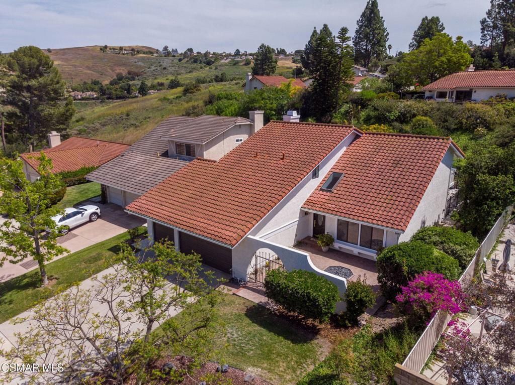 Step into this recently refurbished Thousand Oaks home situated in the highly desirable Fountainwood East neighborhood. Positioned with an excellent location, on a quiet cul-de-sac of only 7 homes. With a private gated courtyard and a well-thought-out floor plan, this home offers a dramatic spiral staircase entry with vaulted ceilings. Large spacious Living room flowing into the dining room. One bedroom downstairs with adjacent bathroom that was been fully upgraded with freestanding vanity, quartz counter-tops, tiled shower surround with glass enclosure. Spacious family room with F/P opens to the newly refurbished kitchen. The chef's kitchen offers newly installed clean white cabinetry, quartz counter-tops, tile back splash, stainless steel appliances & walk-in pantry. Recent upgrades throughout the house include laminate plank flooring, interior/exterior paint, designer carpet, interior doors, baseboards, casing, interior light fixtures, LED recessed lighting, interior outlets & switches. Three large additional bedrooms upstairs. The luxurious primary suite offers a nice relaxing balcony. The ensuite bathroom is spa-like quality and feel, offering dual vanity, soaker tub, tile shower surround with glass enclosure and fully tiled floor to ceiling walls. A refurbished hall bathroom services the two additional large upstairs bedrooms. The backyard is a entertainers delight with sparkling pool, spa and nice mature landscaping. Three car garage with newly installed garage doors, partially drywalled, newly installed rain gutters and solar panels offering energy efficiency. Low HOA. Great convenient location near parks, top rated schools, hiking trails, restaurants, shopping, golf courses & freeway access. Don't wait on this one!