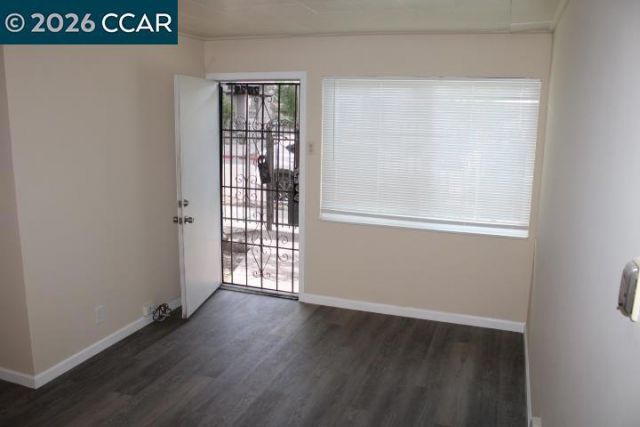 Studio Unit/ 1 Bathroom Downstairs Apartment in a Gated 6-Plex w/ 1 Carport Parking Space. Freshly painted. Remodeled kitchen & bathroom. New laminate flooring throughout. Electric stove/oven. Refrigerator. New window coverings. Not far from Bart Transit. Sec. Dep. $1,395. No pets. No smoking. Owner pays water & garbage. 1 YEAR LEASE.
