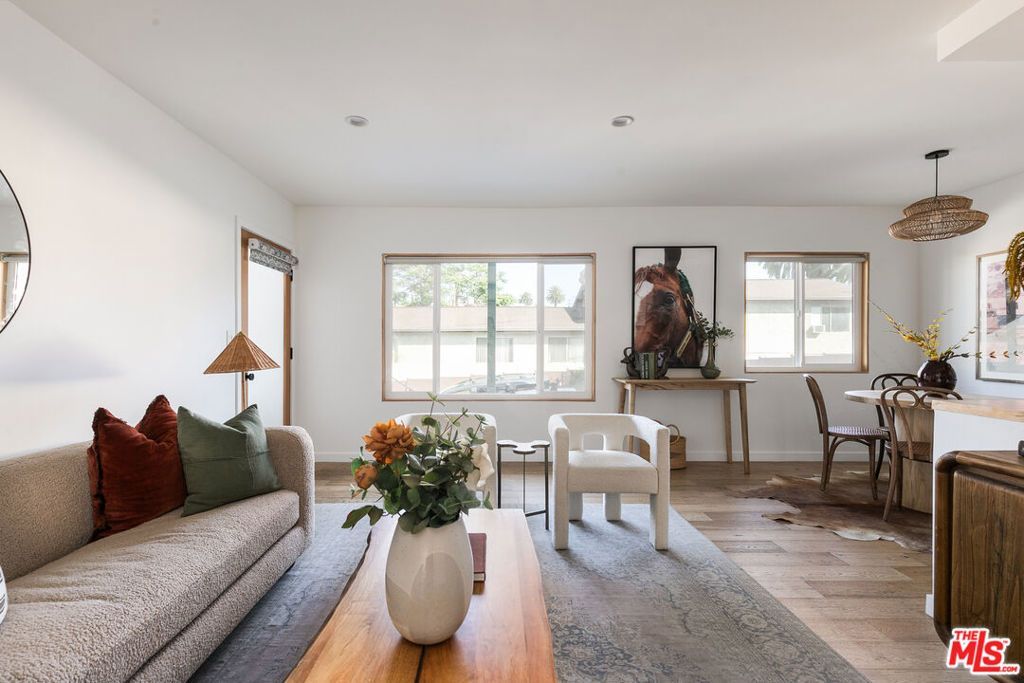Tucked into a stylish mid-century modern building in the heart of Echo Park, this 1BD/1BA residence offers the kind of city living that's equal parts design and ease, where your mornings start with peek-a-boo city views and your afternoons end lounging poolside. White oak floors and a beautifully appointed kitchen set a warm, inviting tone, featuring butcher block counters, open shelving, brass hardware, and crisp white micro tile backsplashes. No detail was overlooked. The generously sized bedroom offers ample closet space with double closets and floor-to-ceiling built-in shelving, while the bath features a deep soaking tub and patterned tile floors. Outside, a gated entry welcomes you home and the magical pool area delivers serious Palm Springs vibes, bordered by white brick, redwood lounge decks, and lush landscaping. Practical conveniences round out the package: mini-split AC, in-unit laundry, and off-street parking with dedicated storage. Located just a few blocks from Sunset Boulevard, you'll have Echo Park favorites like Levant Bakery, Canyon Coffee, Bacetti, and Bar Flores practically at your doorstep. A rare combination of location, design, and comfort, this is Echo Park living at its best.
