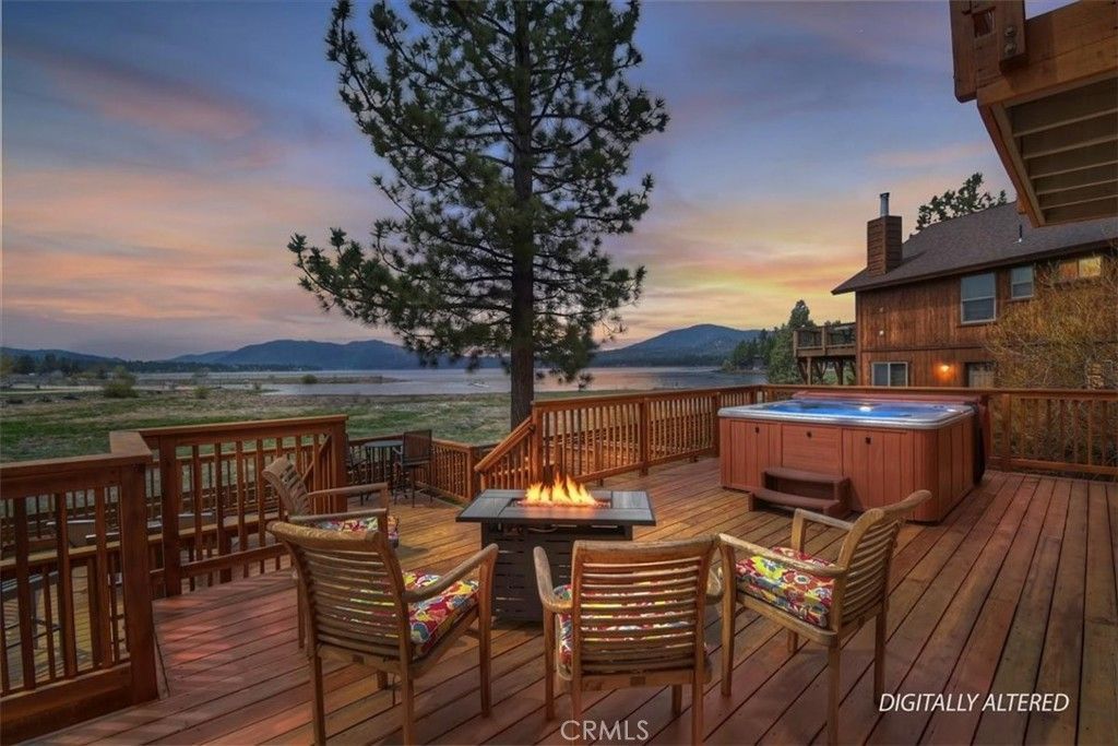 Welcome to lakefront living at its finest in the highly sought-after Eagle Point. Perfectly positioned on a generous 14,168 sq ft lot, this beautifully updated 4-bedroom, 3-bathroom home offers 2,755 sq ft of thoughtfully designed space and an unbeatable front-row seat to Big Bear Lake. Step inside to an open-concept floor plan designed for both comfort and entertaining, featuring a spacious living area anchored by one of three fireplaces, creating the perfect mountain ambiance year-round. The expansive kitchen is ideal for hosting, complete with alder cabinetry, ample counter space, and seamless flow into the main living and dining areas. This home was made for gathering and unwinding, with a separate game room featuring a pool table and its own fireplace?perfect for après-ski evenings or summer nights after a day on the lake. The primary suite is a true retreat, offering its own fireplace, added soundproof insulation for privacy, and a cozy, elevated feel. Thoughtful upgrades are found throughout, including cedar-lined closets, porcelain flooring downstairs, waterproof vinyl flooring upstairs, and a striking oak staircase that ties the home together with warmth and style. Step outside onto the back deck and take in what may be some of the most breathtaking sunset views in Big Bear. With lakefront access and dock rights, this property offers the ultimate waterfront lifestyle. Enjoy front-row seats to the 4th of July fireworks over the lake and the magical torchlight parade on New Years Eve?right from your own backyard. Complete with an attached 2-car garage and located in one of Big Bear Lakes most desirable neighborhoods, this home is the perfect blend of luxury, comfort, and iconic mountain living.
