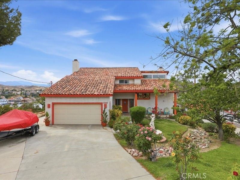 Perched to capture one of the most breathtaking vistas in Canyon Lake, this exceptional 3-bedroom, 2.5-bath, 2,306 sq. ft. two-story home offers a truly stunning million-dollar view of the main lake, rolling hills, and unforgettable sunsets. With one bedroom conveniently located downstairs, this thoughtfully designed home blends comfort, style, and resort-style living. This spacious home includes one downstairs bedroom, soaring 12-foot ceilings in the living room, a marble fireplace, and a family room/kitchen combo with a cozy wood-burning fireplace. Enjoy outdoor living with 770 sq. ft. of covered patio space perfect for entertaining, plus a 600 sq. ft. Balcony/Deck off the oversized primary suite with incredible lake views. Beautiful award-winning landscaping and custom stained-glass entry add to the charm. Recent upgrades include a new water heater, sump pump, upstairs A/C unit, renovated balcony/railings, updated bathrooms, and whole-home soft water filtration system. As an incredible bonus: Included with the purchase is a 19ft Carlson Signature Series Glastron Boat featuring a new engine and trailer?your ticket to enjoying the Canyon Lake lifestyle in true James Bond style.