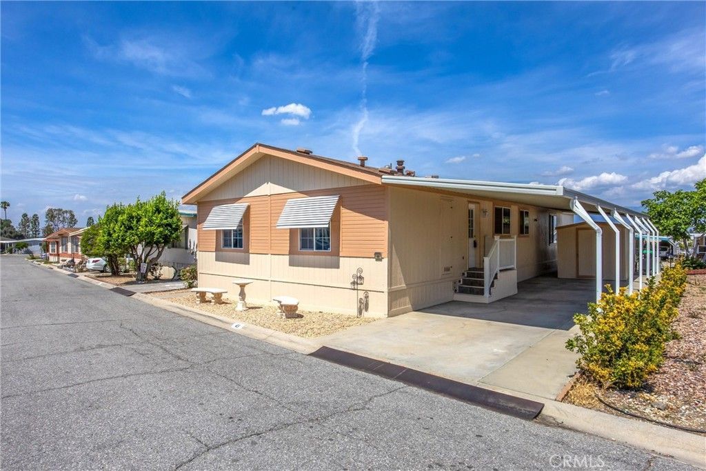 NEWLY REFRESHED and move in ready. This home in an all age park features fresh paint, new flooring and appliances. From the welcoming front porch a double door entry opens into the open floor plan that allows you to structure your space as needed. The spacious kitchen maintains the heart of the home, with a new refrigerator, center island, and large pantry. The Main Suite is located on the North end of the home, and two remaining bedrooms are found on the South side, adjacent to the guest bath. Inside laundry room includes Washer, Dryer, and storage. You'll find ample storage throughout, and a large shed for all the extras. Enjoy beautiful mountain views to the North, beyond the adjacent greenbelt. Enhanced parking simplifies carport space for two vehicles. Located in close proximity to Loma Linda Hospital and Medical Centers, as well as the VA Medical Center. University Mobile Estates offers community pool, spa, game room, community room, dog park, and dedicated car wash bay. It's time to move, you've just found your new home!