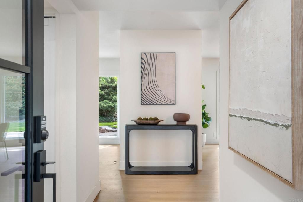 This top-to-bottom renovation of a two-story mid-century modern in Rancho Palos Verdes has been thoughtfully reimagined. A bold stucco-and-black-wood facade, new roof, and white oak-toned plank flooring throughout set the tone for what's inside. A sunlit living room with a plaster-surround fireplace, picture windows, and French doors opening to the backyard anchors the main floor. The open-concept kitchen and dining area is the heart of it all ? white oak cabinetry with black hardware, Calacatta quartz countertops and full-slab backsplash, professional-grade range with pot filler, and a generous island beneath gold pendants and a botanical wallpaper accent. Upstairs, the primary suite feels like a private retreat ? vaulted shiplap ceilings, a balcony with treetop views, and a spa-caliber en-suite with a freestanding soaking tub against a brick accent niche, rain shower with hand-textured plaster walls, and a white oak vanity with Calacatta countertops and shiplap-framed mirror wall. Every bathroom has been renovated with designer tile and curated fixtures. Outside, a rear patio flows beneath a black pergola to an outdoor kitchen with built-in grill, while a landscaped lawn stretches under mature trees bordered by roses. Close proximity to Terranea Resort, Point Vicente Lighthouse, coastal trails, and top rated schools ? make this one of the South Bay's most coveted addresses.