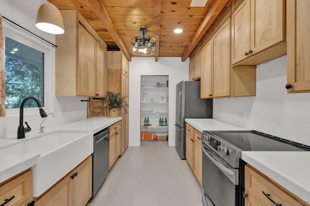 Charming 3-bed, 2-ba home nestled in a tree-lined neighborhood in historic Julian. This well-maintained property features a newly built deck, owned solar for energy efficiency, and an updated kitchen with modern finishes. Interior highlights include bamboo flooring, stylish lighting updates, and a cozy wood-burning stove. Enjoy year-round comfort with new mini-split systems and the added benefit of a water softener. The fully fenced yard offers privacy and space for outdoor living, plus a versatile 14x16 workshop. A perfect blend of character, functionality, and convenience in a peaceful mountain setting.