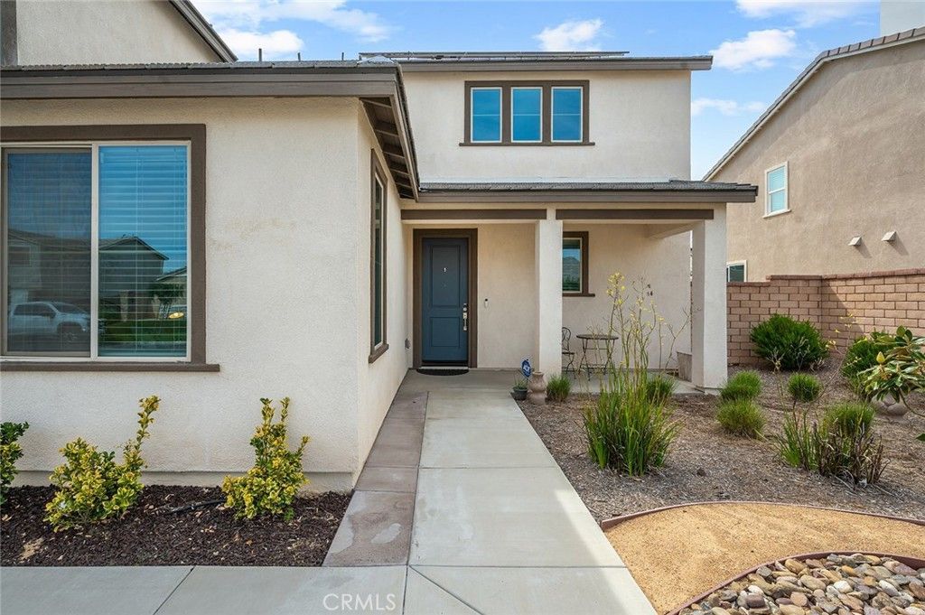 Welcome to Audie Murphy Ranch in Menifee/canyon Lake Discover this exceptional, energy-efficient residence located in the highly desirable Audie Murphy Ranch community. This meticulously upgraded home showcases contemporary design, high-end finishes, and outstanding attention to detail throughout. A versatile tandem garage extends the length of the home, providing parking for two cars in a single bay while creating valuable extra space for storage, a home gym, or a workshop that keeps the main living areas clutter-free and maximizes the homes overall functionality and appeal. The open-concept floor plan features upgraded lighting, quartz countertops in the kitchen and all bathrooms, and luxury vinyl tile flooring in the main living areas and bathrooms. The gourmet kitchen includes a farmhouse-style sink, touch-activated faucet, upgraded stove and oven, a widened refrigerator space, and a frosted pantry door. The 12-foot sliding glass door opens to an extended covered patio, ideal for seamless indoor-outdoor living. This home is equipped with 25 solar panels and two Tesla battery storage packs, providing exceptional energy efficiency. Additional highlights include dual-zone heating and air conditioning, every room pre-plumbed for ceiling fans, upgraded banister railing on the staircase, and a bonus room with French doors that can serve perfectly as an office or flex space. The primary bathroom offers an upgraded soaking tub for added luxury. The exterior features an extended driveway and patio, a three-car garage with decorative windows and dual exterior lighting, a gas line stubbed for a built-in barbecue, and a fully landscaped backyard with a sprinkler system, as well as lemon and lime trees for a touch of charm. Residents of Audie Murphy Ranch enjoy access to two resort-style pools and spas, community BBQ areas, multiple parks, trails with exercise equipment, sports fields, fire pits, and the Audie Murphy Skate Park. The community is conveniently located near shopping, dining, and Catherine Newport Middle School, just a short walk away. Experience modern comfort, sustainable living, and community amenities at their finest in this beautifully upgraded Audie Murphy Ranch home.