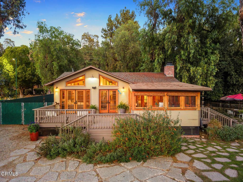 South Pasadena Equestrian Estate|Nearly 1.5 Acres of Premier Horse Property. A rare offering, this gated equestrian estate is a harmonious blend of architectural elegance and exceptional horse facilities, a private sanctuary designed for both refined living and an active equestrian lifestyle. Tucked behind mature trees and manicured hedges, the property offers highly desired seclusion with two gated driveways, multiple outdoor living spaces, and direct access to the scenic Arroyo Seco trails. Whether you're a professional equestrian, avid rider, or simply seeking an unmatched indoor-outdoor lifestyle, this estate delivers it all. At the front of the property is a beautifully designed 2-bed, 2-bath architectural ranch home featuring hardwood floors, vaulted ceilings, and a seamless connection to the outdoors. The spacious primary suite is a true retreat, complete with a mosaic-tiled fireplace, tranquil bath with dual vanities, a custom closet, and an attached office with direct access to both the front deck and side yard. The kitchen is equipped with a farmhouse sink, built-in appliances, a stunning La Cornue range, and a breakfast bar -- all with views of the San Pascual Stables training arena. Adjacent is the cozy dining area with French doors leading to a wraparound deck, perfect for al fresco dining or morning coffee. The inviting living room features a second fireplace with dual built-in glass-faced cabinets and deck access. Equestrian Facilities: World-Class Amenities at Home. Purposefully built for the serious equestrian, the property boasts extensive horse facilities such as an 8-stall barn with spacious stalls, integrated tack room/office, wash/grooming stalls and laundry room, full-size riding arena with ample space for jumping, dressage, or western disciplines, 16 additional outdoor stalls -- ideal for boarding, training, or breeding operations and direct access to the Arroyo Seco trail system -- offering miles of scenic riding paths. Easy trailer access via two gated driveways is perfect for hauling horses or hosting clinics. With its thoughtfully designed layout, the equestrian areas are efficiently organized yet blend organically into the landscape, providing space, comfort, and function while adding to the estate's beauty and serenity. Whether watching horses from the porch, entertaining friends, or enjoying peaceful moments, every inch of the property reflects quiet luxury and lifestyle harmony.