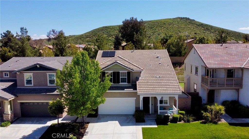 Experience modern comfort and exceptional value in this beautifully upgraded five-bedroom home in Murrietas highly desirable Rancho Bella Vista community. The home features paid-off solar on the SCE NEM program, offering long-term savings and everyday convenience. The main floor includes a full bedroom and bathroom that works well for guests, extended family, or a home office. The open-concept kitchen features granite countertops, an island, upgraded cabinetry, and double ovens. It flows naturally into the spacious great room with a cozy fireplace. Luxury vinyl plank flooring and plantation shutters add a refined and modern touch throughout. Upstairs, you will find four additional bedrooms, a versatile loft, and a generous primary suite with a soaking tub, a separate shower, and a walk-in closet. Step outside to a private backyard oasis with no rear neighbors. The space includes a covered patio, stamped concrete, turf, a built-in barbecue island, and a palapa that creates a shaded outdoor dining area. It is ideal for entertaining or relaxing year-round. Located within walking distance to top-rated schools, this home offers a blend of comfort, efficiency, and lifestyle. It is a rare five-bedroom layout with a downstairs suite and a premium outdoor space.