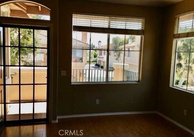 Westpark Irvine Brio complex at corners of Barranca and Paseo Westpark, right across the street from shopping, restaurants and movie theater, all within walking distance. Walking distance to Plaza Vista Elementary School and Woodbridge High School. Upper corner unit featuring a gas fireplace, high ceilings, wood laminate flooring throughout, and the tile flooring in the kitchen and bathrooms. Partial mountain views from the entry balcony, kitchen, living room. Features 2 full bedrooms, 2 full bathrooms and a detached 2 car garage located just a few feet away from entry stairs. Westpark association provides you with key scanner access to 3 different pools and 2 different tennis court areas.