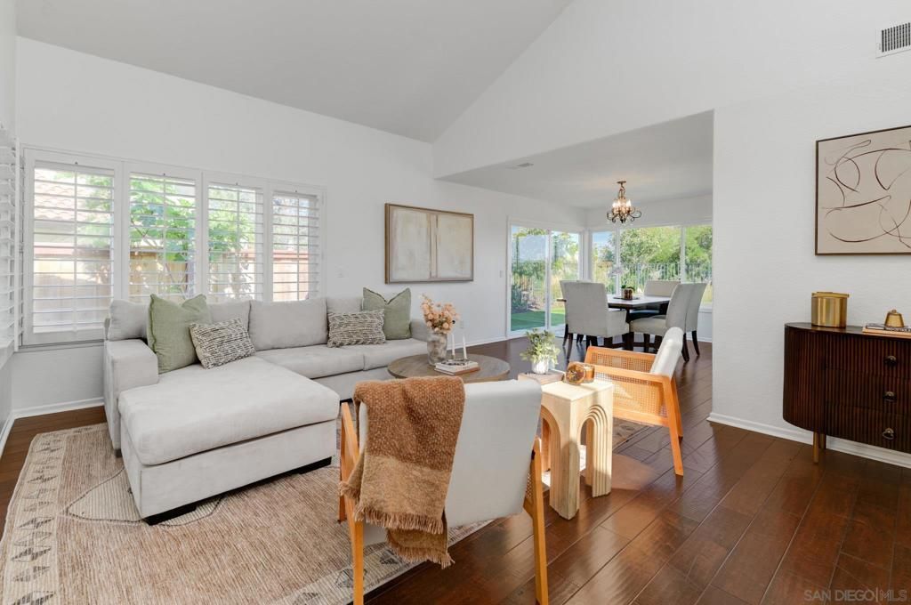 Striking hilltop location in the Terraces at Cantebria with panoramic hillside and mountain views, this beautifully upgraded home offers the perfect blend of comfort, style, and functionality. Thoughtfully renovated inside and out, the property features a newer roof, owned solar, fresh interior and exterior paint, and a fully reimagined outdoor setting with paver driveway and walkways, new landscaping, turf, irrigation, and landscape lighting. The backyard is a true retreat, complete with a stamped concrete patio, pergola, fire pit, putting green, planter beds, and a modern Pebble Tech pool and spa with river rock accents?ideal for entertaining. Located just a few minutes to the beach, this home is true California living at it's finest. Inside, the home is bright and inviting with gorgeous hardwood floors, designer paint, shutters, recessed lighting, dual pane windows and sliders, central air, and a whole house fan. The updated kitchen is complemented by upgraded appliances, while fireplaces in both the family room and primary suite add warmth and character. The recently renovated primary suite features a spa-like bathroom with soaking tub, custom shower, new dual vanity, all-new floor and wall tile, updated lighting and plumbing fixtures, and custom California Closets. Additional highlights include a One Water system, upgraded insulation, newer water heater, epoxy garage floors, and a spacious 3-car garage. Residents enjoy access to community pool, spa, and tennis courts, all just moments from shopping, dining, and everyday conveniences in the heart of Encinitas.