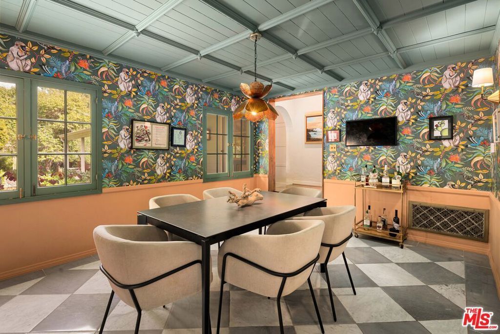 Tucked into the coveted Studio City hills, this character-rich 1930s farmhouse blends timeless charm with a thoughtfully curated, design-forward renovation. Set behind gates on an expansive 10,000-square-foot street-to-street lot, the property offers total privacy, and the potential for future expansion. Warm and inviting, the 3-bedroom, 3-bath residence (with two additional bonus spaces) is filled with soulful details and modern comforts. The living room stuns with soaring vaulted ceilings and a fireplace, creating an airy yet cozy gathering space. A formal dining room creates an unforgettable backdrop for entertaining with its paneled ceiling, and striking Bardiglio & Carrara marble checkerboard floors. The newly remodeled kitchen is both stylish and functional, featuring a built-in banquette, and designer lighting that carries throughout the home. Every inch has been thoughtfully restored, with an extensive renovation of the home by LA based Studio Macdonald Libit, seamlessly marrying old-world character with contemporary convenience. Step outside to a true private retreat. The grounds have been completely reimagined with lush, indigenous California landscaping, surrounding a brand-new saltwater pool, spa, and cold plunge. A dedicated gym and a hidden speakeasy-style bar add an unexpected layer of luxury and lifestyle. The newly rebuilt two-car garage is equipped with an EV charger, and the street-to-street lot includes a separate APN, offering a prime opportunity for an ADU with its own entrance off Regal Place, ideal for guests, rental income, or a creative studio. A rare offering where character, craftsmanship, and modern living converge in one of Studio City's most sought-after hillside settings.