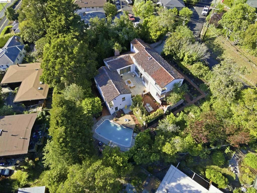 Magnificent Mediterranean villa, thoughtfully reimagined with extensive remodeling and lush landscaping, set in the desirable Kensington Hills. This exceptional estate offers 6+ bedrooms and 3+ bathrooms on a large, private, and secluded lot, complete with a serene courtyard and sparkling pool. The beautifully remodeled kitchen features new custom cabinetry, honed stone countertops, and high-end appliances, seamlessly connecting to a formal dining room and a bright, inviting breakfast area. A grand living room with soaring cathedral ceilings and a fireplace creates an impressive yet comfortable gathering space. Upstairs, the luxurious primary suite offers stunning Bay views, built-in birds-eye maple desks, and a spa-like bathroom with both a soaking tub and separate shower. An adjoining room provides the perfect space for a nursery, office, or retreat, along with convenient laundry access. The lower levels include five additional bedrooms, two bathrooms, a wine cellar, a secondary laundry room, abundant storage, and direct access to expansive decks and the tranquil pool area?ideal for indoor-outdoor living. Located just minutes from charming Kensington Village and the beautiful Blake Gardens, this home offers a rare blend of privacy, elegance, and convenience.