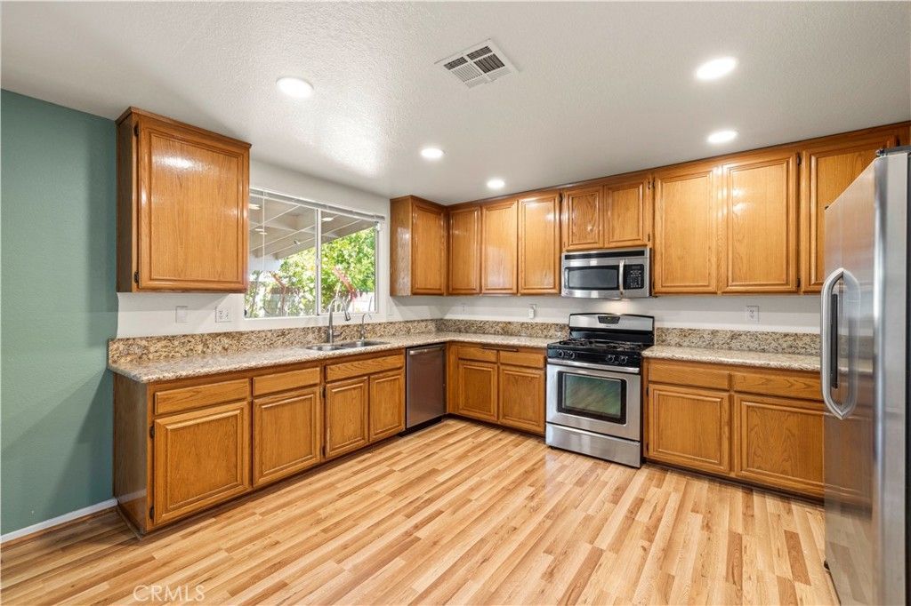 Located on a quiet cul-de-sac, this desirable Lancaster two-story offers space, versatility, and a layout designed to fit a variety of living needs. Recent improvements create a fresh and inviting feel throughout. The open floor plan features a living space and dining area and a well-appointed kitchen with wood-type flooring, granite counters, stainless steel appliances, and generous prep space. The home has been thoughtfully reconfigured to maximize function, including two main level bedrooms. One bedroom with fireplace could serve as a private primary-style retreat on main floor. Upstairs, the former primary suite has been divided into two separate areas, creating flexible bonus space for sleeping, working, studying, gaming, or storage. Whole house water filtration system! Outside, enjoy a covered patio, mature landscaping, ample room for entertaining, and the added convenience of a 3-car garage. With no HOA or Mello Roos, you'll enjoy this home for years to come. Welcome home!