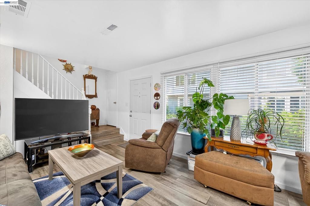 Looking for a move-in-ready home in Pleasanton? Located in the highly sought-after Las Positas Gardens community. This beautifully maintained townhouse offering the perfect blend of modern convenience and timeless charm. This 3-bedroom, 1.5-bathroom home is ideal for first-time buyers, commuters, and families seeking a top-tier California lifestyle. The upper level hosts three spacious bedrooms and ample closet storage, centered around a full bathroom. The main level features an expansive window that floods the space with natural light, highlighting the stylish, modern laminate wood flooring that extends throughout both the lower and upper levels. The heart of the home is the functional kitchen, offering updated cabinetry, quartz counter tops, stainless steel appliances and dining area. Step directly outside to your private, fenced patio with storage area, an ideal retreat summer evenings. The community features lush greenbelts and a playground. Unbeatable location for commuters and families alike. Enjoy close proximity to top rated Pleasanton schools. Residents benefit from easy access to I 580, I 680, BART, Stoneridge Mall, and Hacienda Crossings. Move in ready and perfectly positioned. Dont miss this rare East Bay opportunity!