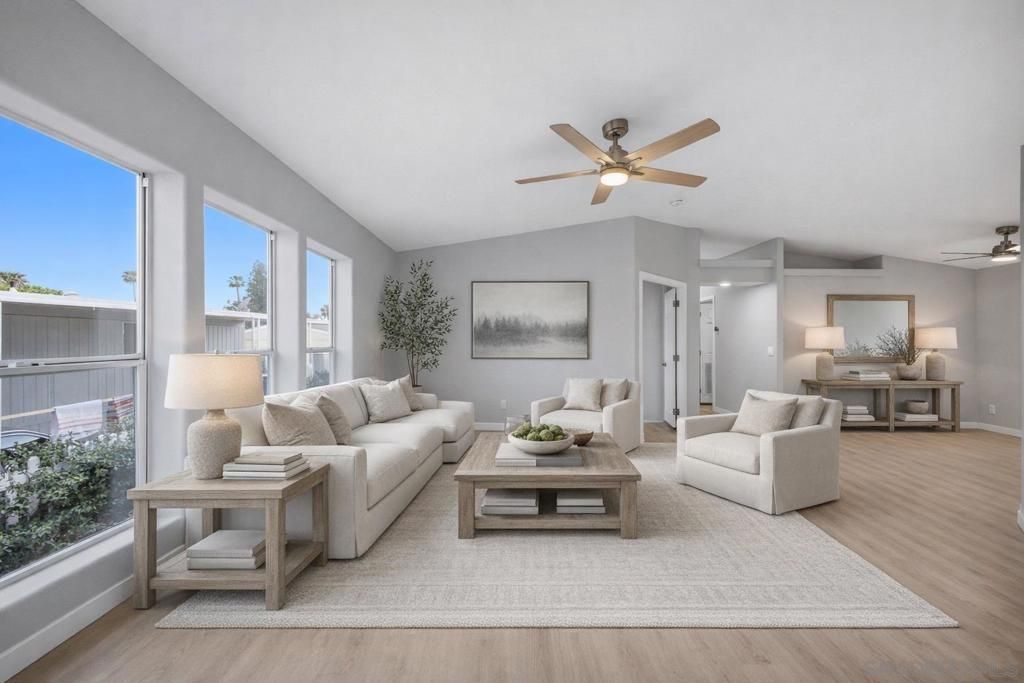 Welcome to this remodeled home located within the gated Rancho Mesa 55+ community. The front porch offers a comfortable outdoor space suitable for morning coffee, reading, or relaxing throughout the day. Inside, the home features updated flooring, newer appliances, and refreshed interior finishes. The layout offers an open-concept living and dining area with natural light throughout, creating a bright and functional living space. The kitchen is positioned adjacent to the main living area and includes ample cabinet storage and included appliances, providing convenience for everyday use and entertaining. This home offers three bedrooms and two full bathrooms, allowing flexibility for guests, a home office, or additional living space. The primary bedroom includes an en-suite bathroom. The exterior includes landscaped areas and a private outdoor setting. The Rancho Mesa community features gated access and maintained common areas, with proximity to shopping, dining, and other everyday amenities.