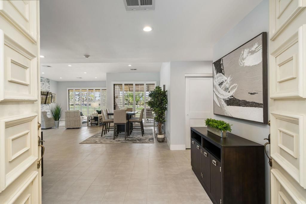 Views, Views, Views! Experience resort-style living in this fully renovated, never-lived-in builder's home, ideally positioned on a rare double fairway lot in the iconic Springs Country Club in the heart of Rancho Mirage. Perfectly situated on the 11th and 12th fairways, this exceptional residence captures breathtaking south-facing panoramas of the San Jacinto Mountains, tranquil lakes, and swaying palms--offering approximately 280 of unforgettable desert beauty.A lush, landscaped approach welcomes you with mature palms, succulents, and vibrant flowering flora, leading to a private courtyard and grand double-door entry. Inside, a light-filled, open-concept floor plan showcases soothing desert tones--soft grays, creams, and beiges--complemented by oversized tile flooring and 5-inch plantation shutters throughout.The stunning chef's kitchen is the heart of the home, featuring a large granite center island, brand-new Viking appliances, and seamless flow into the living and dining areas--ideal for both entertaining and everyday living. Walls of glass open to a wraparound patio, creating the ultimate indoor-outdoor experience with sweeping golf course and mountain views.This highly sought-after Shaughnessy floor plan offers three spacious en-suite bedrooms, each beautifully appointed for comfort and privacy. The luxurious primary suite is a true retreat, complete with spectacular fairway views, a spa-inspired bath with dual vanities, new cabinetry, an oversized soaking tub, glass block accents, and a generous walk-in closet. A versatile bonus nook off the primary suite provides the perfect space for a home office or cozy reading lounge.Additional highlights include designer chrome fixtures throughout, a newly pavered driveway, an oversized front patio ideal for entertaining, and a quiet cul-de-sac location in the heart of the community.Offered furnished, this rare and extraordinary property combines impeccable design, premium location, and unmatched views--an exceptional opportunity for the discerning buyer seeking the very best of desert luxury living.