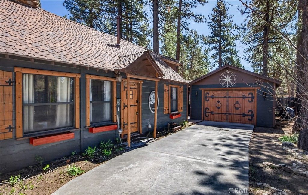 Adorable single story cabin on level corner lot with direct street access. This home is located in the Peter Pan area of Big Bear City on Highway 38. Home features one bedroom and one bath (in main house), laundry room, living areas, kitchen, granite countertops, new appliances, upgraded electrical, irrigation drip system, greenhouse, and a detached one-car garage. There is an office/retreat attached to the garage. This extra room could be used as additional bedroom or home office. Property is fully fenced. New roof installed December 2025. Furnishings are negotiable. Refrigerator, stove, and washer/dryer included in sell of property. Close to shopping, skiing, hiking, and a host of other recreational activities. Make an appointment to view this home and explore all it has to offer. Agent is owner