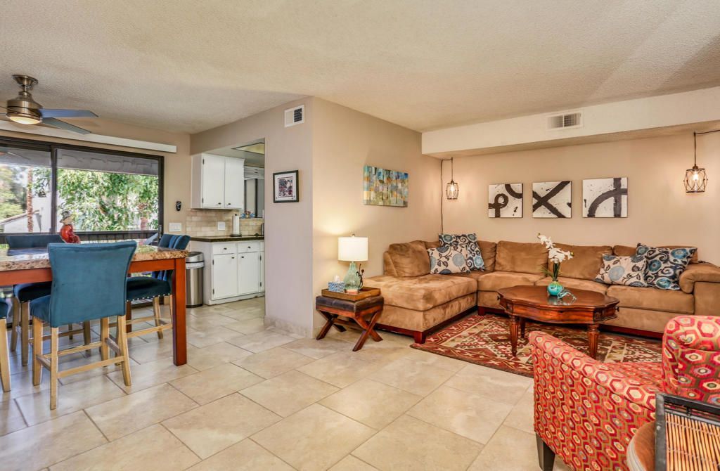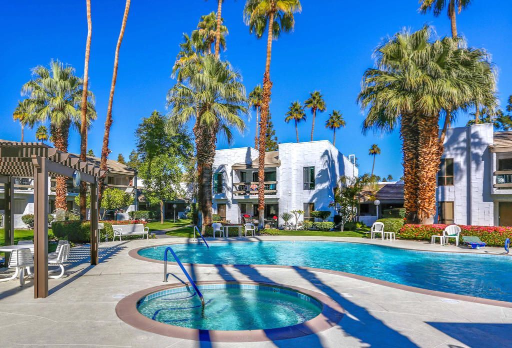 Vacation Rental. Just freshly updated! Minimum 30 day booking. Comfortable and stylish poolside condo overlooking the pool/spa in a quiet location with carport parking and close to the tennis courts. Near Tahquitz Creek golf in the Waverly Park area. Private laundry. Two bedrooms/Two baths. (One bedroom was a den, converted to a full bedroom). Upgraded kitchen & baths. Free WiFi and full size laundry. Bi monthly cleaning included in lease. Utilities included. Sleeps up to four people. King primary, queen guest bedrooms. Sorry, no pets or smoking. Rates: April to January: $97/night. Feb/March $120/night. $500 refundable security deposit. $195 cleaning fee. $188 Prop Fee. 50% up front, 50% due 90 days prior to arrival. Booked: March 6-12, 2026, January 2027. All other dates are available.