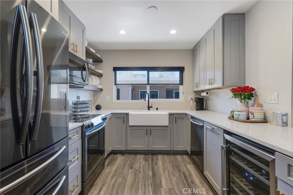 Perched on the top floor and overlooking a peaceful, landscaped courtyard, this beautifully upgraded residence offers the perfect blend of comfort, style, and location. Flooded with natural light through newer windows, the home features updated flooring and a thoughtfully remodeled kitchen designed to impress?complete with brand new sleek stainless steel appliances, recessed lighting, quartz countertops, an apron-front sink, a designer tile backsplash, and built-in wine fridge. The kitchen truly shines with abundant counter space and generous cabinetry, including rotating corner cabinets with built-in lazy Susan's and a dedicated spice rack drawer for effortless organization. The expansive living room provides a warm yet sophisticated setting, highlighted by a stylish limewashed floor-to-ceiling fireplace that is fully functional?perfect for cozy evenings or entertaining. Each room is equipped with its own AC unit for personalized comfort, while the living room and second bedroom feature blackout curtains for added privacy and restful sleep. The primary suite is a true retreat, boasting a generously sized bedroom, a fully remodeled en-suite bathroom with a striking glass-enclosed black tile shower and spa-inspired stone flooring, as well as dual vanities with his-and-hers sinks and mirrors. The oversized closet is exceptionally well-designed with two levels of storage, including a dedicated section for shoes and handbags. A second spacious bedroom offers its own large closet and access to a versatile enclosed balcony with tile flooring?perfect for extra storage, a greenhouse, or a cozy home office. Both bedrooms are generously sized and offer flexible living options. This unit has an enclosed patio that is AC controlled. Additional highlights include a modern in-unit washer and dryer, and a highly desirable location just minutes from the vibrant dining and shopping scenes along Ventura Boulevard, as well as the popular neighborhoods of Studio City, Sherman Oaks, and the NoHo Arts District. Enjoy easy access to the 101 and 170 freeways, walking distance to grocery stores, restaurants, and a nearby doggy daycare. Plus, youre just a short drive from Universal Studios Hollywood and Burbank. Fully remodeled high end 2+2 unit you will not be disappointed. Great area next to a lot of happening places in Studio City. Washer and Dryer in Unit.