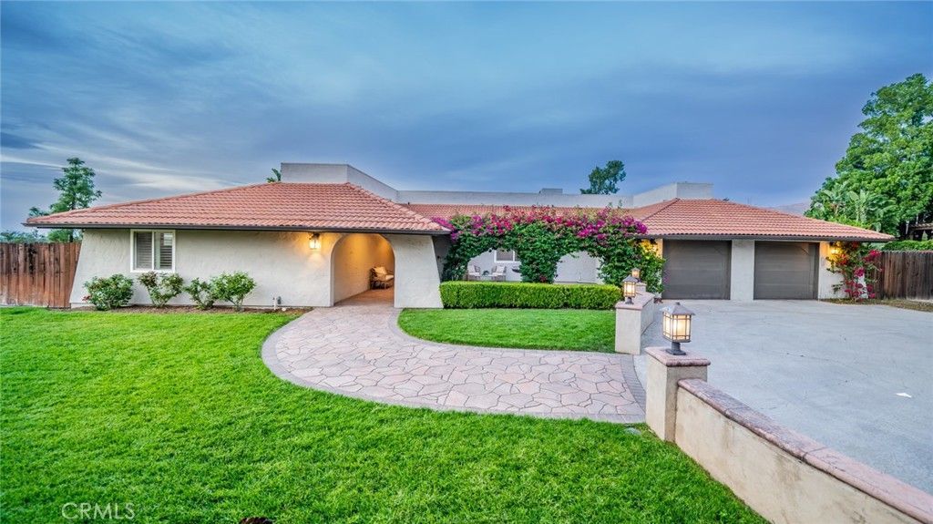 Nestled at the end of a peaceful cul-de-sac in a desirable Riverside neighborhood, this exquisite pool estate home offers a rare combination of privacy, elegance, and expansive outdoor living. Sits on an impressive 45,738 ft. lot, this beautifully appointed residence features 4 spacious bedrooms, 2.5 bathrooms, and a 2-car attached garage. From the moment you enter, the home reveals its distinctive character and warm ambiance. The main living areas are enhanced by stunning laminate and travertine flooring throughout the first level, creating a refined yet practical foundation for everyday living. The living room is a showpiece, highlighted by dramatic exposed beam ceilings and a striking Spanish-style fireplace, offering a timeless focal point and an atmosphere perfect for relaxing evenings or elegant gatherings. The open kitchen blends style with functionality, featuring beautiful shaker cabinetry, elegant quartz countertops, a stylish tile backsplash, and stainless-steel appliances. Each bedroom offers generous proportions and soft carpet flooring, creating comfortable retreats for rest and relaxation. The primary suite serves as a private sanctuary, complete with a well-appointed bathroom featuring dual vanities, quartz countertops, bronzed fixtures, and a spacious standing shower. The additional bathrooms showcase custom tile work with mosaic accents, modern vanities, and carefully selected finishes that elevate the homes overall design. Step outside into your own private resort-style backyard, where an expansive finished concrete patio sets the stage for unforgettable outdoor living. Enjoy warm California days by the sparkling pool and spa, host evening gatherings around the custom fire pit, or relax beneath the gazebo while taking in the peaceful surroundings. Ideally located near a scenic golf course, this remarkable property delivers the perfect blend of tranquility, space, and upscale living ? a true standout in the Riverside market.