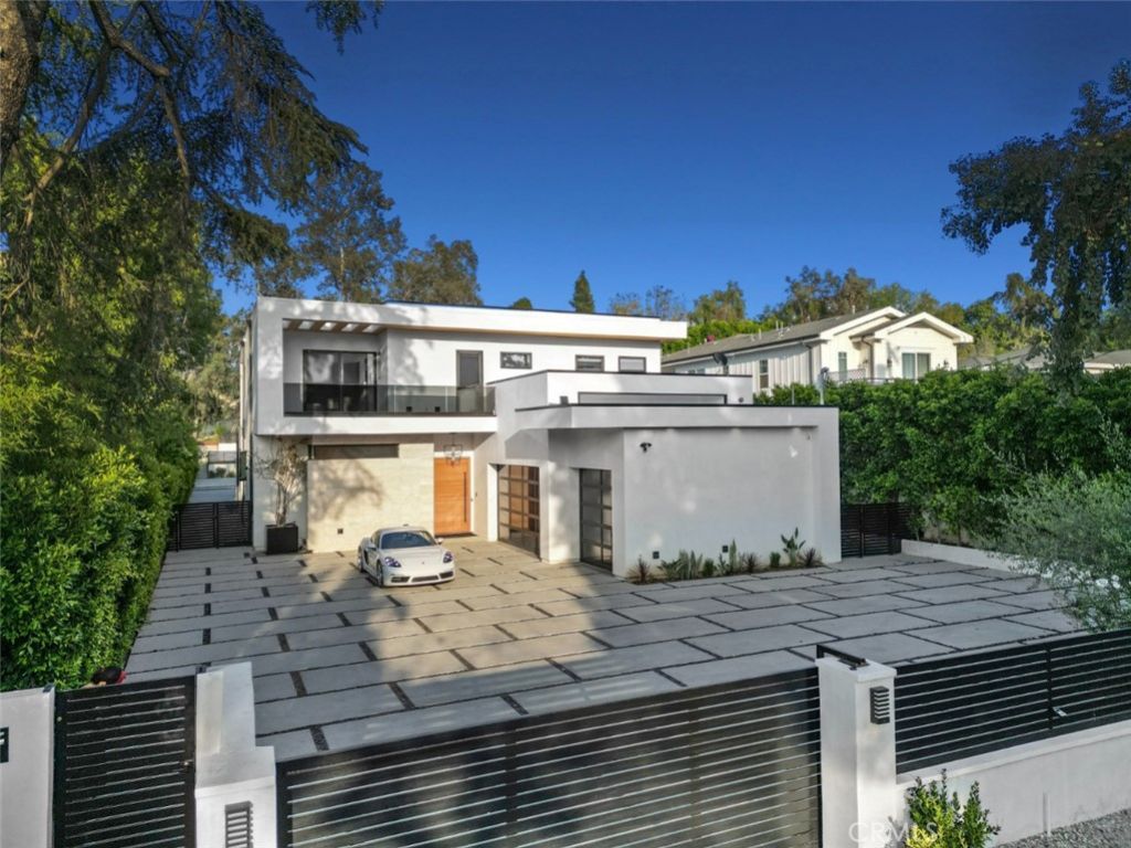 Available furnished for short-term lease (30-day minimum) or long-term tenancy, this extraordinary newly constructed modern estate offers an exceptional blend of architectural sophistication and resort-style living. Privately gated and introduced by a serene courtyard entry, the residence makes an unforgettable first impression with dramatic scale, soaring ceilings, and a beautifully designed open-concept floor plan. Inside, a stunning great room is anchored by a floor-to-ceiling fireplace and flows effortlessly into a magazine-worthy chefs kitchen curated for both everyday living and elegant entertaining. Rich European cabinetry, exquisite stone finishes, an oversized center island, and top-of-the-line Miele appliances ? including double ovens, microwave, refrigerator/freezer, and a 5-burner range ? create a kitchen that is as functional as it is luxurious. An adjacent catering kitchen and butlers pantry add an exceptional level of convenience. Spanning over 6,000 square feet, the home features five spacious en-suite bedrooms and impeccable custom finishes throughout. Expansive walls of glass, oversized windows, and disappearing doors flood the interiors with natural light while creating a seamless connection to the outdoors, capturing the essence of California indoor-outdoor living. A sculptural floating staircase leads to the upper level, where a covered terrace with glass accents offers an additional space to relax or entertain. The primary suite is a true sanctuary, evoking the ambiance of a five-star hotel with its own fireplace, private balcony, oversized walk-in closet with center island, and a breathtaking spa bath featuring dual vanities, a soaking tub, and an oversized marble walk-in shower. Designed for exceptional entertaining, the backyard showcases a resort-style pool and spa, covered patio, built-in barbecue, and a full outdoor kitchen surrounded by lush designer landscaping. A beautifully appointed en-suite pool house/cabana and a brand-new stadium-style state-of-the-art pickleball court further elevate the propertys private resort atmosphere. Additional highlights include electronic gates, smart home integration, alarm system, integrated sound, security cameras, and an impressive collection of premium amenities throughout.