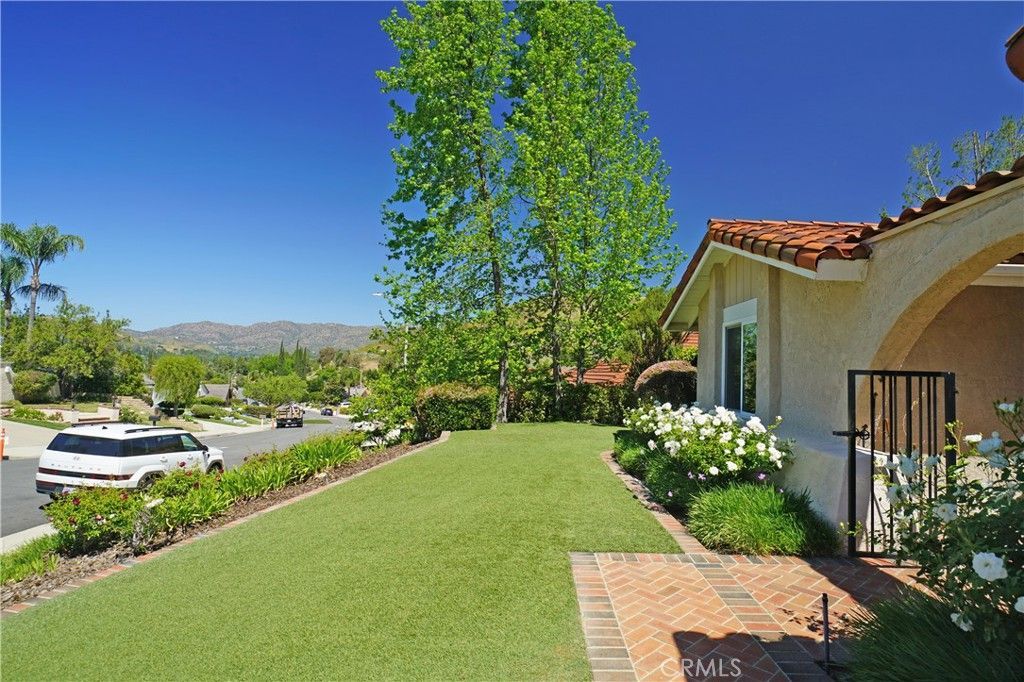Welcome to this unique opportunity in the highly sought-after Fountainwood community of Agoura Hills. This exceptional single-story home offers over 2,100 square feet on an expanded lot exceeding 40,000 square feet?a combination of size, privacy, and potential that is seldom available. Ideally located on Carell Avenue, one of Fountainwoods most desirable streets, the property enjoys wider spacing and no backyard neighbors, creating a level of privacy that is increasingly hard to find. From the moment you arrive, the homes gorgeous curb appeal immediately stands out. Enter through an inviting atrium into a bright, flowing floor plan. Rich cherry wood flooring, custom moldings, baseboards, paneling, and wainscoting?crafted by a local artisan?add warmth and character throughout. The step-down living room is anchored by a striking limestone decorative fireplace, creating a sophisticated yet comfortable focal point. The kitchen features travertine floors, granite countertops, oak cabinetry, stainless steel appliances, and just outside the kitchen, a walk-in bar with counter seating?ideal for everyday living and entertaining. The spacious primary suite includes dual closets, including a walk-in, and a marble bath. Secondary bedrooms are well-proportioned, with a hall bath offering a relaxing spa tub. The backyard is where this home truly separates itself. Backing to open space, it offers exceptional privacy and tranquility. The oversized lot provides a rare opportunity to build a view deck on the hillside?unlocking what could become one of the most compelling view properties in Agoura Hills. The brick patio with awning is a perfect outdoor sanctuary, and is a blank canvas for a future pool or custom outdoor retreat. Additional features include owned solar panels (offsetting electric costs), smooth ceilings, recessed lighting, built-in garage storage, fresh paint, a tile roof, and a concrete driveway designed for long-term, low-maintenance living. Fountainwood is known for its peaceful setting, strong sense of community, and access to award-winning schools within the Las Virgenes Unified School District. Surrounded by scenic mountains, hiking and biking trails, and parks, yet just minutes to shopping, dining, the freeway, and the beach ? this location offers the best of both convenience and lifestyle. The fire in the decorative fireplace was added virtually.
