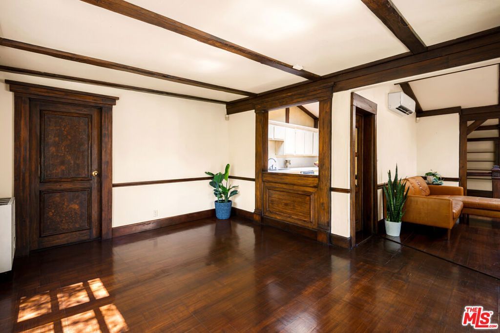 Set in the hills of Beachwood Canyon, this private, gated residence blends timeless European character with effortless California lifestyle. Surrounded by lush landscaping on a quiet, tree-lined street, both tucked away yet moments from the energy of the village. Interiors are warm and refined, with antique wood floors, beamed ceilings, and architectural details throughout. Natural light pours in through French doors and three artist skylights; creating an airy, indoor-outdoor flow perfect for entertaining. The layout offers 2 bedrooms, 1 full bath, a formal dining area, library, laundry area and a bright, flexible office space. Outside, a sun deck and expansive rooftop garden create a true extension of the living space. Ideal for entertaining and unwinding. A hidden hillside retreat reveals sweeping canyon views. Additional features include a detached two-car garage and mature citrus trees. Zoned LARD4, the property also presents future development or expansion potential, adding a compelling long-term opportunity. Located just two blocks from Beachwood Village, minutes from the Hollywood Sign and Griffith Observatory, with easy access to hiking trails, cafes, and the Franklin Strip. A rare offering that you do not want to miss.