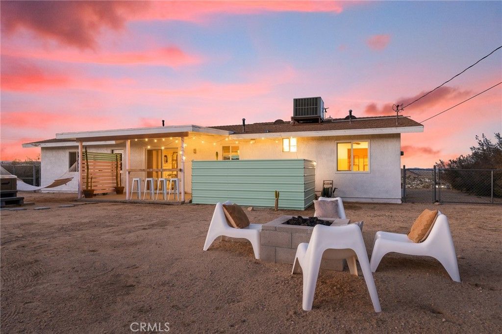 Available for lease, this charming unfurnished 2-bedroom, 1-bath home is ideally located in Joshua Tree, just moments from the national park entrance and downtown. Enjoy sweeping views of the mountain ridge and twinkling city lights in a peaceful desert setting. The home includes a washer, dryer, stove, dishwasher, and refrigerator for added convenience. An attached two-car garage offers secure parking and extra storage. The private backyard features a tranquil garden setting with a soaking tub and is enclosed with chain-link fencing. Conveniently located near Yucca Valley, Pioneertown, and Twentynine Palms, with easy access to local dining, shopping, and outdoor adventures. A wonderful opportunity for a full-time residence or desert retreat. Lease Details: Unfurnished No utilities included One pet allowed, maximum 25 lbs