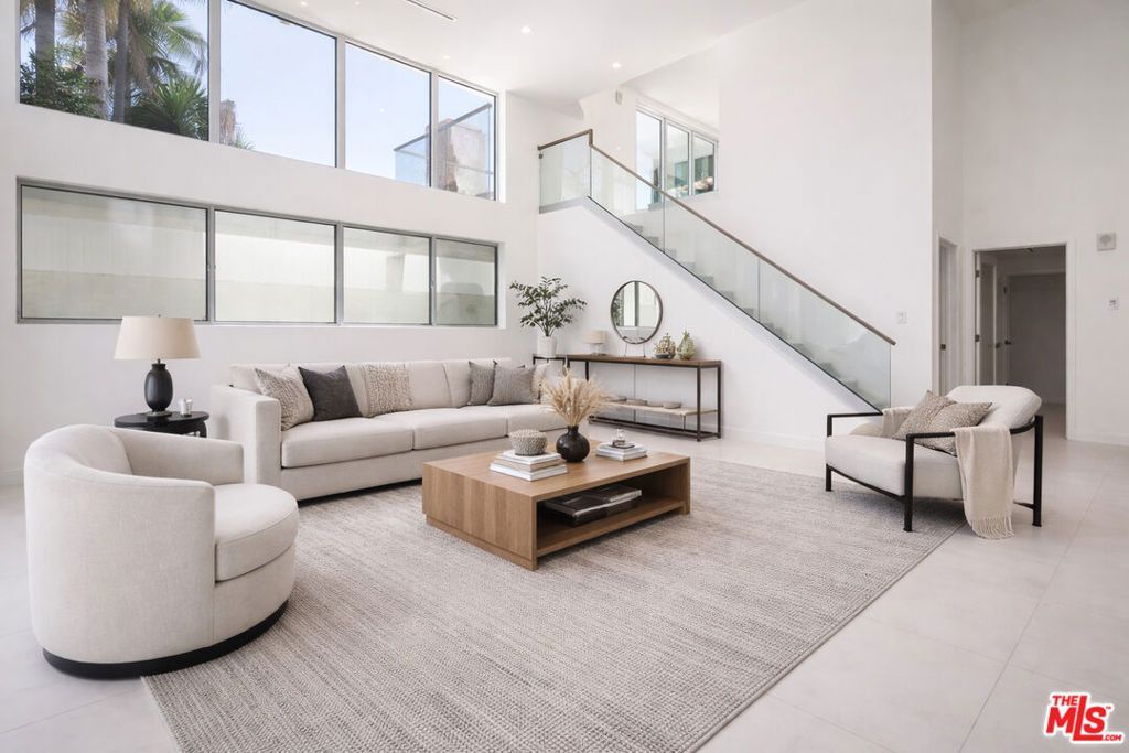 Virtual Staging Shown. This residence offers 1,306 square feet of thoughtfully designed interior space, complemented by more than 573 square feet of private outdoor living, including a patio, yard, and terrace. Welcome to THE TITANIUM, Unit 1 - Zirconium, a striking two-story architectural condominium defined by soaring ceilings exceeding 20 feet, expansive natural light, and a seamless connection between indoor and outdoor spaces. The upper-level loft, complete with its own private terrace, overlooks the dramatic living area below and provides flexibility as a home office, gym, creative studio, or potential additional bedroom. The main level opens directly to a private patio and yard, creating an effortless indoor-outdoor lifestyle. Additional highlights include two well-appointed primary suites, direct elevator access, and two side-by-side parking spaces in a secure garage. Ideally located just moments from Melrose Place, this distinctive residence offers a rare blend of privacy, design, and convenience in one of West Hollywood's most sought-after neighborhoods.