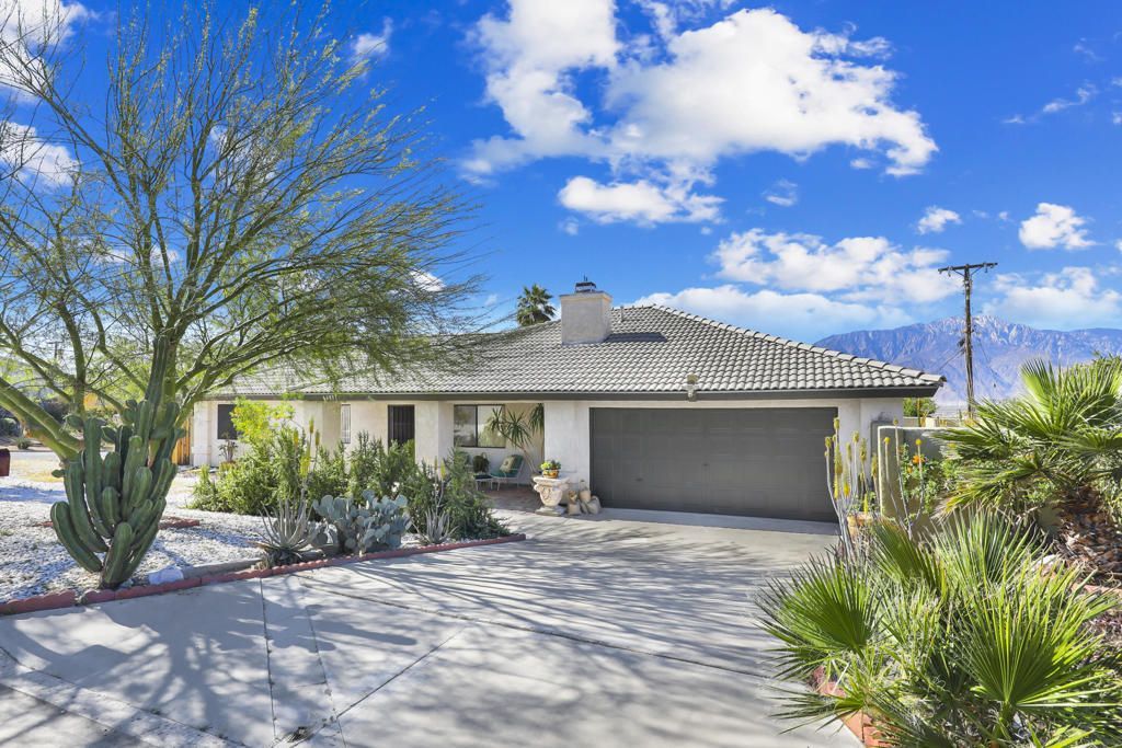 Perched above the city, this private desert retreat offers an elevated blend of serenity, style, and effortless living, framed by sweeping mountain views. Designed for both relaxation and versatility, the expansive, fully enclosed backyard presents a rare opportunity to create a custom resort setting with room for a pool and spa. With NO HOA and exceptional short-term rental or investment potential, the property is ideally positioned just minutes from Palm Springs and Joshua Tree National Park. A generous covered patio extends the living experience outdoors--perfect for entertaining or enjoying tranquil desert evenings. Inside, a thoughtfully designed layout features three bedrooms plus a den, offering flexibility for guests, work, or leisure. Slate and laminate flooring provide a cohesive, low-maintenance aesthetic throughout. The living room is anchored by a striking stacked stone fireplace, creating a warm and inviting focal point. The kitchen offers abundant cabinetry and opens to picturesque backyard and mountain vistas. The primary suite serves as a peaceful retreat and walk-in closet, while two additional bedrooms ensure comfort and privacy for guests. Bonus - owned solar. Call today to schedule your appointment to view this home.