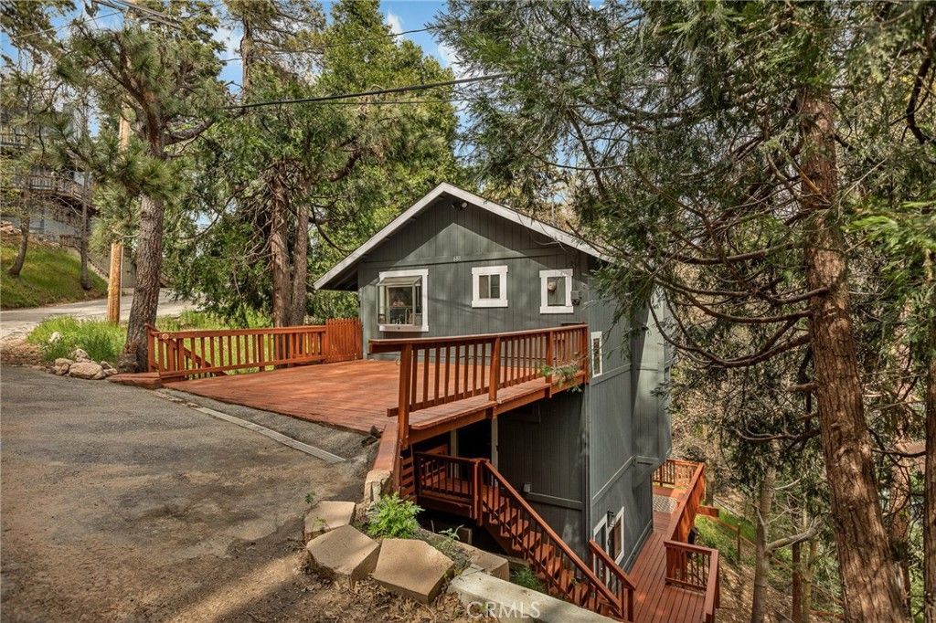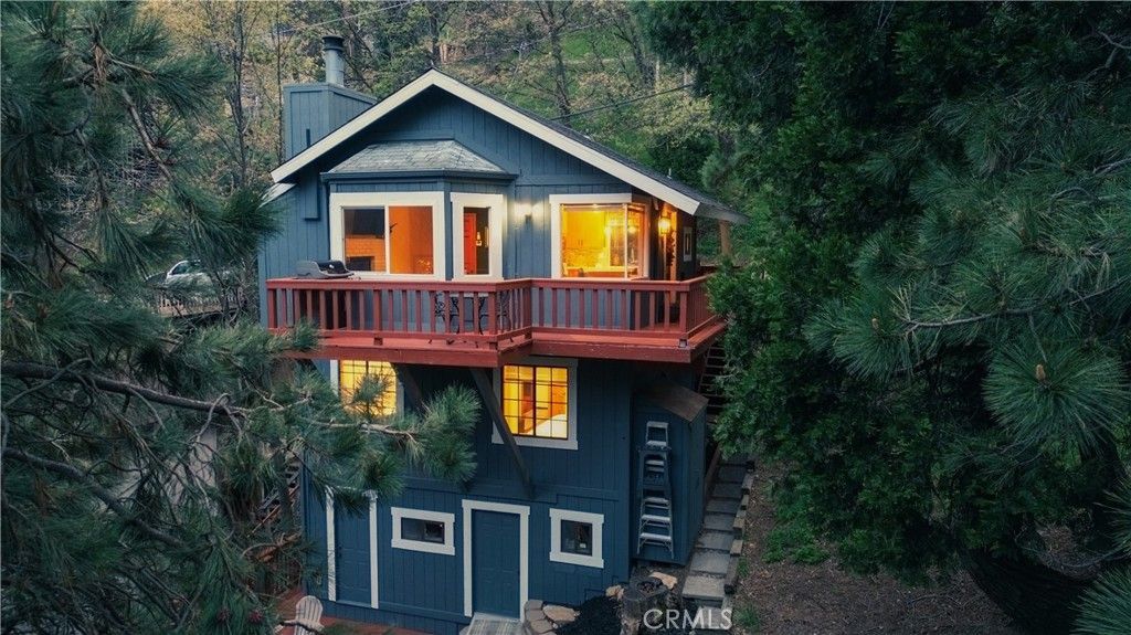 Nestled among the trees with beautiful forest views, this tastefully updated cabin offers the rare combination of level parking and easy level entry?making mountain living both convenient and inviting. Step inside to the main level, where an open-concept living area welcomes you with warm natural light, engineered wood floors, and a cozy wood-burning fireplace. The updated kitchen features stainless steel appliances and flows seamlessly into the living space, perfect for entertaining or relaxing after a day outdoors. A conveniently located powder room completes this level. Step outside onto the elevated deck to take in the fresh mountain air and unwind under the pines. The middle level offers two comfortable bedrooms, a full bathroom, and a dedicated laundry closet for added convenience. Downstairs, a private-entry suite provides excellent flexibility for guests, extended family, or potential rental use, complete with its own full bathroom and access to a spacious lower deck with firepit. Additional highlights include a fenced yard, newer roof (2022), mini-split system for year-round comfort, newer exterior paint (2023), newer water heater (2021), and a kitchen water filtration system. Offered turnkey with furnishings negotiable, this home is ready to enjoy from day one?whether as a full-time residence, weekend escape, or investment opportunity.