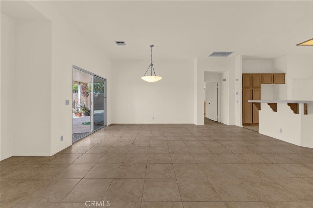 This single level home sits on a quiet corner lot with mature desert landscaping and a clean, well maintained exterior that creates a strong first impression, with curved walkways, palms, and layered plantings adding both character and privacy while the setting captures open sky and distant mountain views; inside, the layout opens immediately into a large main living area with high ceilings, expansive tile flooring, and abundant natural light, giving the space a bright and functional feel that easily accommodates both everyday living and larger gatherings, while the adjacent dining area connects directly to the backyard through wide sliding glass doors, reinforcing an easy indoor outdoor flow; the kitchen is positioned just off the main living space with generous counter space, a wraparound breakfast bar, and ample cabinetry, offering a practical footprint that allows for casual seating and clear sightlines into the living and dining areas; the primary suite is set apart with brand new LVP flooring, a spacious layout, and direct access to a well sized bathroom and walk in closet, creating a comfortable retreat within the home, while additional bedrooms also feature brand new LVP flooring and continue the same clean, move in ready condition with neutral finishes that allow flexibility for different uses; the backyard is designed for low maintenance enjoyment with desert landscaping, mature trees, and multiple seating areas, anchored by a covered patio that provides consistent shade and an outdoor built in grill area that supports year round use, while a central fountain feature adds a focal point and a sense of separation between entertaining and relaxation spaces; overall, the home offers a combination of open interior layout, practical design, and private outdoor space, positioned on a corner lot that enhances both curb appeal and livability.