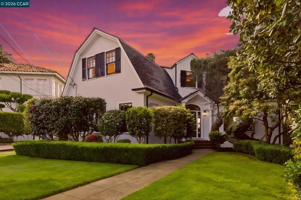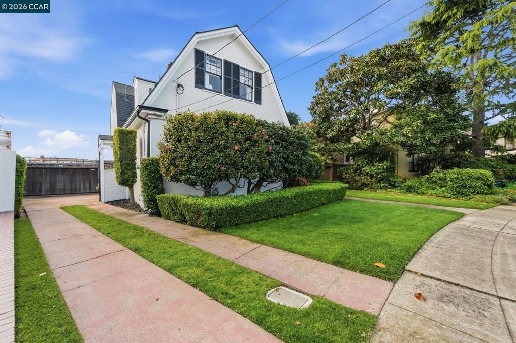 A rare offering along the lagoon in Alamedas coveted Gold Coast, this elegant Tudor Revival?inspired residence on sought-after Palmera Court presents a compelling blend of timeless architecture, generous scale, and exceptional waterfront living. Set on an expansive 11,700± sq ft parcel, the property unfolds into a private retreat where level lawns, mature landscaping, and thoughtfully designed outdoor spaces create a setting of both beauty and ease. At the waters edge, a covered pergola with integrated lighting serves as a refined open-air pavilion ideal for year-round dining and entertaining, while the adjacent deck offers a tranquil vantage point to take in the serene lagoon views. The grounds provide a rare combination of usable space and direct water access, delivering an effortless indoor-outdoor lifestyle that is both relaxed and sophisticated. Inside, approximately 2,465 sq ft of well-composed living space features 4 bedrooms and 3 baths, with a flexible two-story layout including the option for a main-level bedroom or office. Original hardwood floors, classic detailing, and abundant natural light enhance the homes warm yet understated elegance. The living room is anchored by a traditional fireplace and framed by picture windows, while the kitchen and dining areas connect seamlessly to the rear grounds, reinforcing the homes connection to its exceptional setting. Upstairs, well-proportioned bedrooms offer comfort, privacy, and versatility, supported by a thoughtful layout designed for everyday living and quiet retreat. Additional features include a detached garage, extended driveway, and ample off-street parking. A substantial basement with comfortable clearance provides excellent storage and offers potential for future use. Positioned on a welcoming court known for its strong sense of community, and just moments from top-rated schools, shoreline paths, Alameda Beach, and convenient SF Ferry access, this is a rare opportunity to own a distinguished residence in one of Alamedas most desirable and tightly held waterfront enclaves.