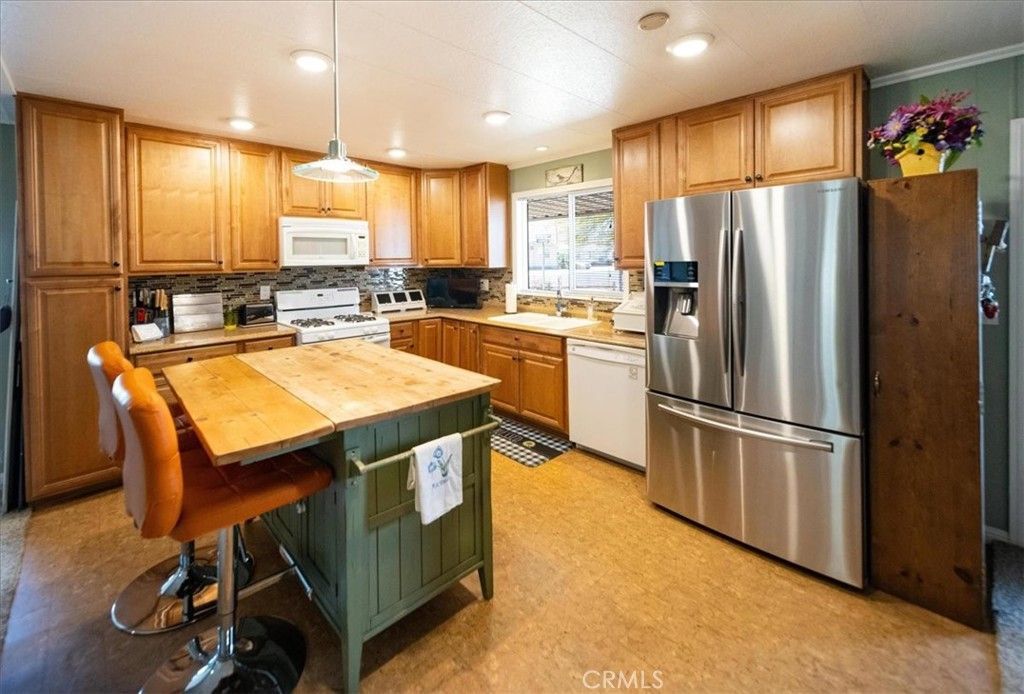 You own the land with this quality, Turnkey, home! It boasts a Spanish Tile Front Patio, that carries on into the front door entry way. Or enter in through a set of wide French Doors conveniently located just near the kitchen. The Kitchen, with its Under Cabinet Lighting and Recessed Lighting provides for a spacious open floor concept - perfect for entertaining. When relaxing in the Family Room, the oversized windows provide for an abundance of natural sunlight, and the home will stay cool with Ceiling Fans installed throughout. The home offers two very spacious bedrooms, while the Master Bathroom provides a Dual Sink Vanity. Your new home includes Free Golf for 2 residents, Pools, Hot Tubs, Tennis, Pickle Ball, and a Club House all included in the HOA. The property comes fully furnished as is.