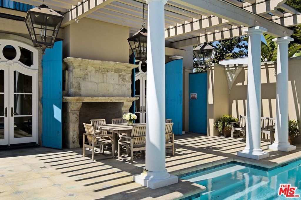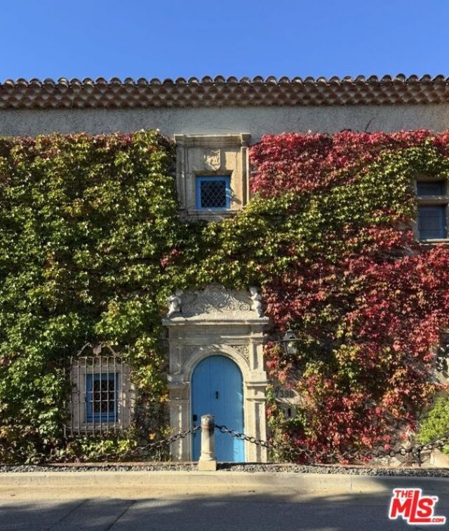 Step into the romance of the French countryside right in the heart of the Hollywood Hills. This fully furnished French Renaissance inspired chateau, perched high above Mulholland Drive, offers sweeping city, canyon, and ocean views that define California luxury. Cloaked in ivy, the residence's facade evokes centuries of history, adorned with authentic 15th-century hand-carved stone angels and gargoyles imported from France. Beyond the grand entrance, time seems to stand still. Inside, exquisite craftsmanship and timeless elegance abound. A stately 16th-century marble staircase ascends to the upper level, where three sumptuous bedrooms await. The grand primary suite serves as a true sanctuary, complete with an en-suite salon featuring a painted and gilded boiserie masterpiece. A fourth guest suite, with a private entrance, lies downstairs. Designed for effortless entertaining and refined living, the home seamlessly blends indoor and outdoor spaces. French doors flood the interiors with natural light, while the painted stone walls and graceful architectural details exude old-world charm. Expansive terraces provide inviting spaces for lounging or al fresco dining, all framed by panoramic vistas that stretch from the canyon to the glittering skyline and out to the ocean beyond.