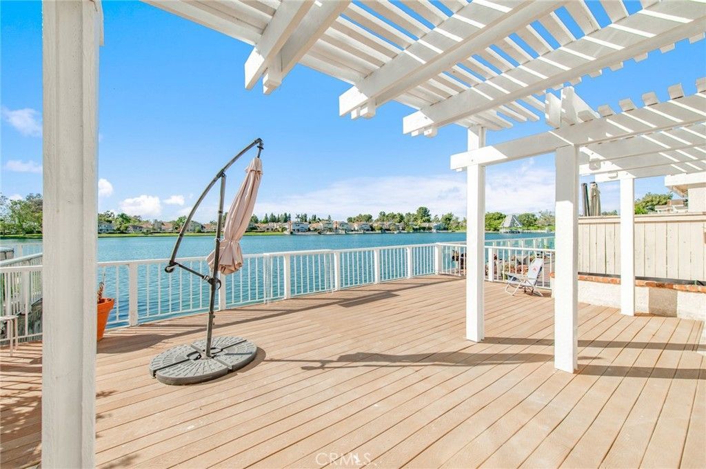 (*** 180-degree Lake Front View) Lakefront home with gorgeous Non-Blocked lake-view. Cathedral ceiling, skylight, recessed lighting, plantation shutter, ceiling fan. NEW stove, NEW dishwasher. Wood flooring through. Two upstairs master suites, the primary one has panoramic lake views. Downstairs full bath & bedroom w/bay window. Lake view from living room/kitchen bay window and French door. NEW kitchen counter tops, garden window. Relax on the lake-front deck and enjoy your resort-style georgeous lake view. Quiet neighborhood. 10-minute walk to Springbrook Elementary School/Woodflower Park, 5-minute drive to Southlake Middle School. 8-minute drive to Woodbridge High. 15-minute drive to UCI. Lots of amenties. Close to everything in Irvine.