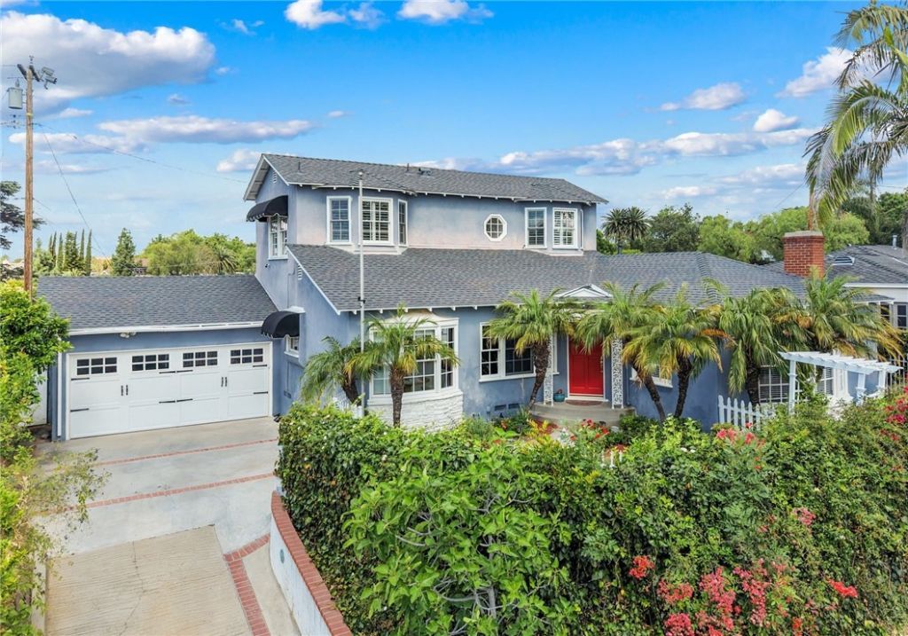 Enjoy this Slice of Heaven in the tranquil Golden Hill neighborhood of Fullerton. This three bedroom, two bath California Coastal Cottage style home is set off above the street tucked away in a Serene natural setting. It features a downstairs bedroom (which could be a primary bedroom by reattaching its door in the hallway) and full bath, convenient office that overlooks the sparkling pool with pool house and playhouse, beautiful hardwood floors, and a two-car detached garage with driveway. You'll appreciate the quiet nature filled setting on the enclosed front yard patio which is perfect for al fresco dining. Producing lemon, apple, tangerine, grapefruit, and fig trees! View Disneyland fireworks from the kitchen and two upstairs bedrooms. This home has vintage 1940s appeal with all the modern conveniences. Just a short walk to amazing Golden Hill Elementary School, Muckenthaler Center on its 8.5 Acres of sculptured gardens, and Hiltscher Park. Close to Downtown Fullerton with all its incredible restaurants, entertainment, and shopping, the Fullerton Loop trail, Cal State Fullerton, Fullerton College and more! Refer to the links to the Video and Matterport three-dimensional interactive floorplan.