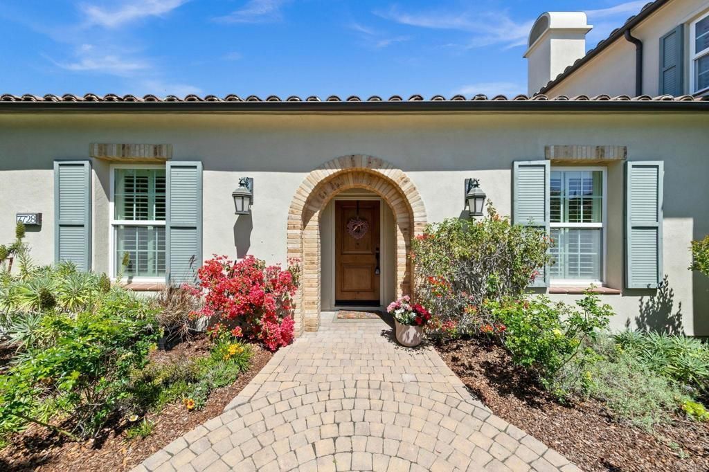 Spacious home located in the gated golf community of Santaluz. Formal living and dining rooms with butlers pantry connecting to the kitchen. Gourmet kitchen features high-end appliances, stone countertops, large center island, and walk-in pantry. Family room with fireplace opens to breakfast nook. Upstairs primary suite includes private balcony, spa-style bathroom, and oversized walk-in closet. Additional upstairs en-suite bedroom plus a downstairs en-suite bedroom. Detached upstairs casita suitable for guests, office, or fitness space. Backyard offers built-in BBQ island, lawn area, and waterfall feature. Interior courtyard with fireplace provides a private gathering space. Gated driveway with porte cochère and three-car tandem garage. Optional Santaluz Spa membership available at additional cost.